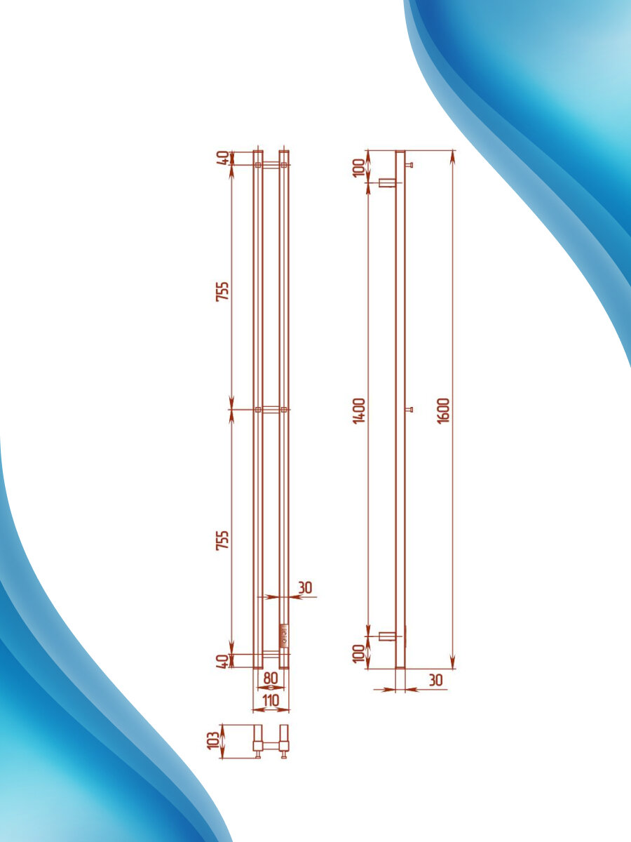 Водяной полотенцесушитель Aquanet Mauro(г2) 800x500