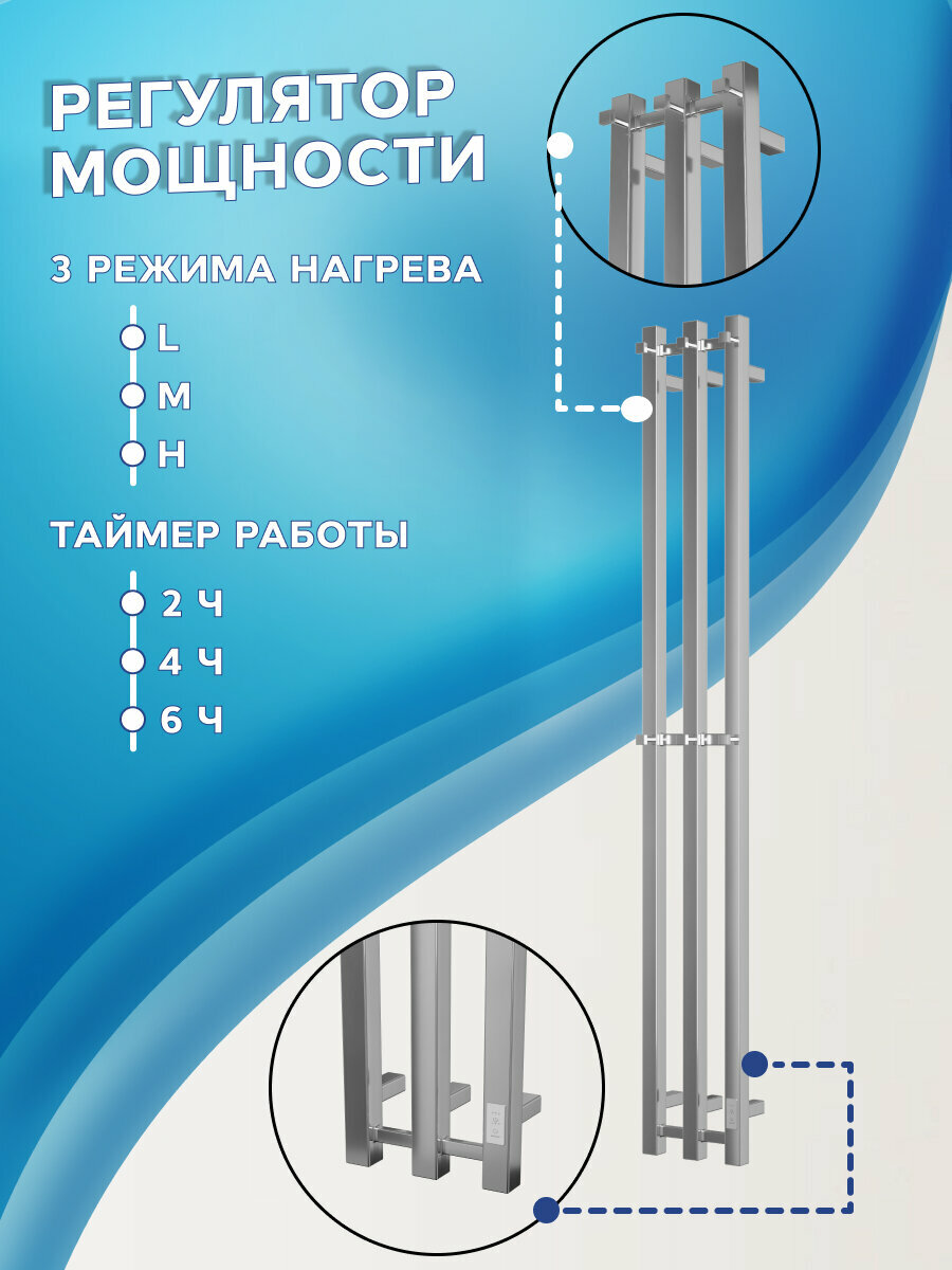 СохранитьПолотенцесушитель дизайнерский электрический, профильный BAU Stella Square 12х160, 3 коллектора, 2 крючка (Полированный DB-0076) интересное: