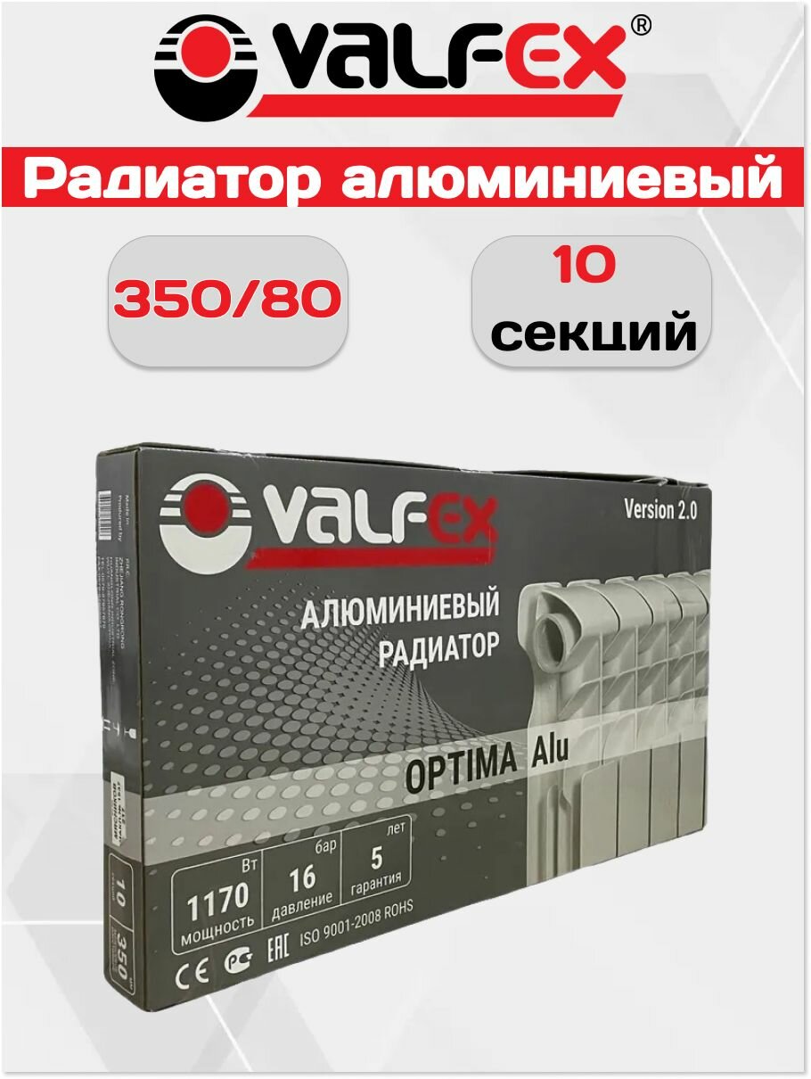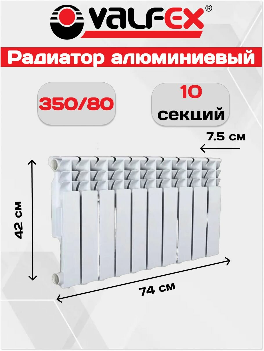 Радиатор отопления алюминиевый батарея с боковым подключением 10 секций 350/80 Valfex CO-BA350/10 L интересное: