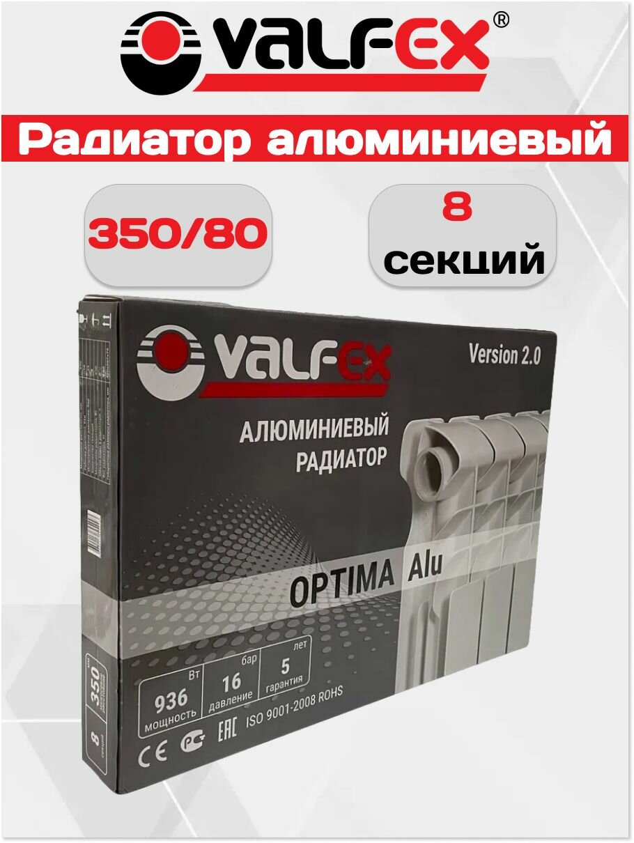 Купить Радиатор отопления алюминиевый батарея с боковым подключением 8 секций 350/80 Valfex CO-BA350/8 L