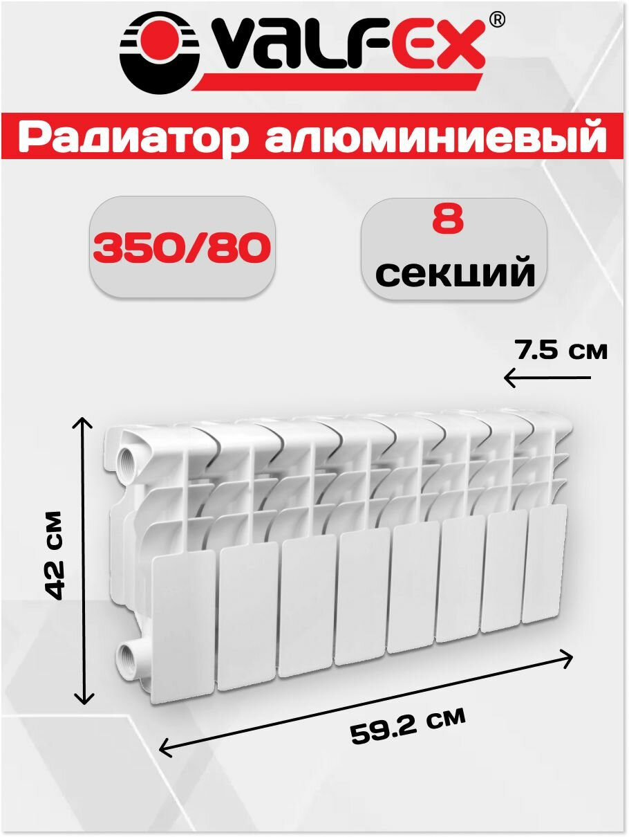 Радиатор отопления алюминиевый батарея с боковым подключением 8 секций 350/80 Valfex CO-BA350/8 L интересное: