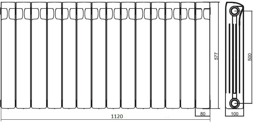 Rifar Monolit 500 - 14 секций боковое подключение, цвет белый интересное: