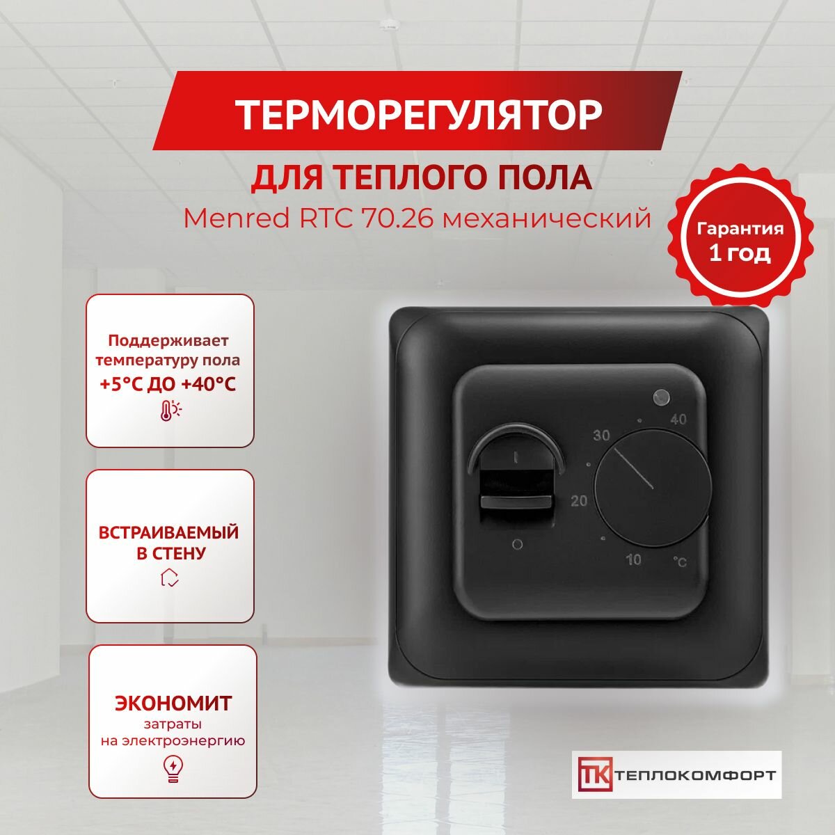 Теплый пол электрический под плитку 1.5 м2 с механическим терморегулятором белого цвета , Нагревательный мат 1.5м. кв Теплокомфорт ЧТК МНД ЭКО