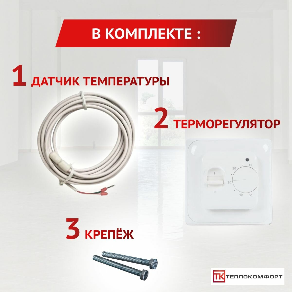 Купить Теплый пол электрический под плитку 1.5 м2 с механическим терморегулятором белого цвета , Нагревательный мат 1.5м. кв Теплокомфорт ЧТК МНД ЭКО