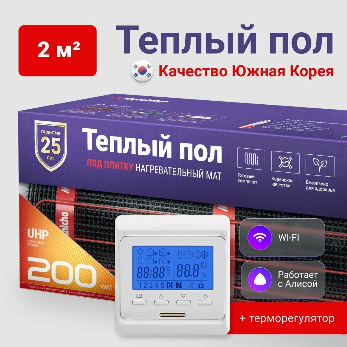 Купить Теплый пол под плитку NUNICHO 2 м2, 200 Вт/м2 с Wi-Fi-терморегулятором M6 белым электрический нагревательный мат