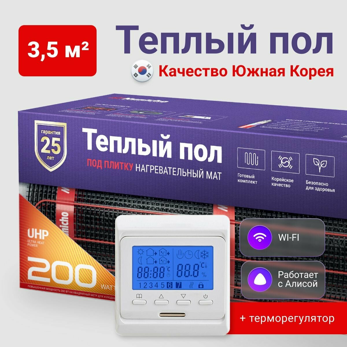 СохранитьТеплый пол под плитку NUNICHO 3,5 м2, 200 Вт/м2 с Wi-Fi-терморегулятором M6 белым электрический нагревательный мат интересное: