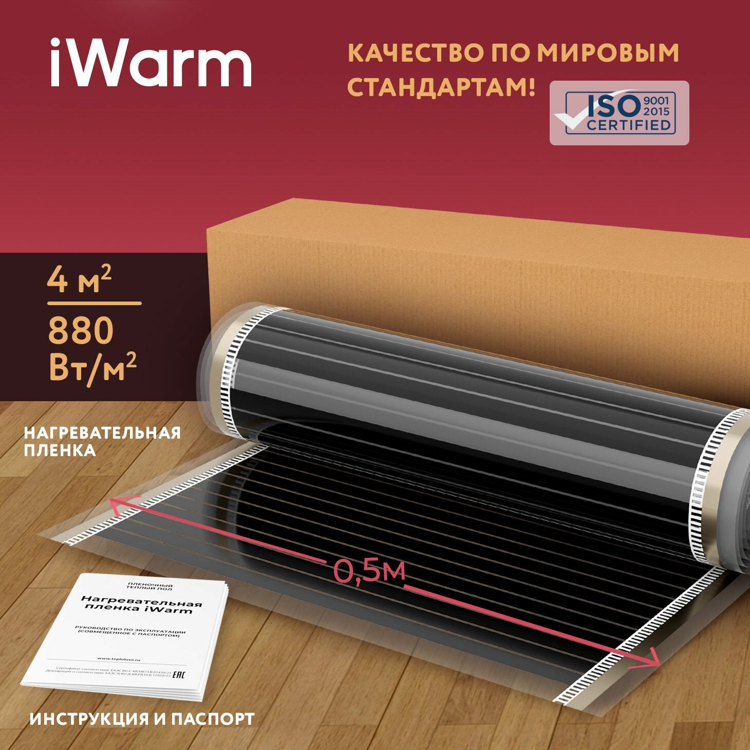 Теплый пол инфракрасный, пленочный теплый пол iWarm 0,5 м2 (220 Вт/кв. м)