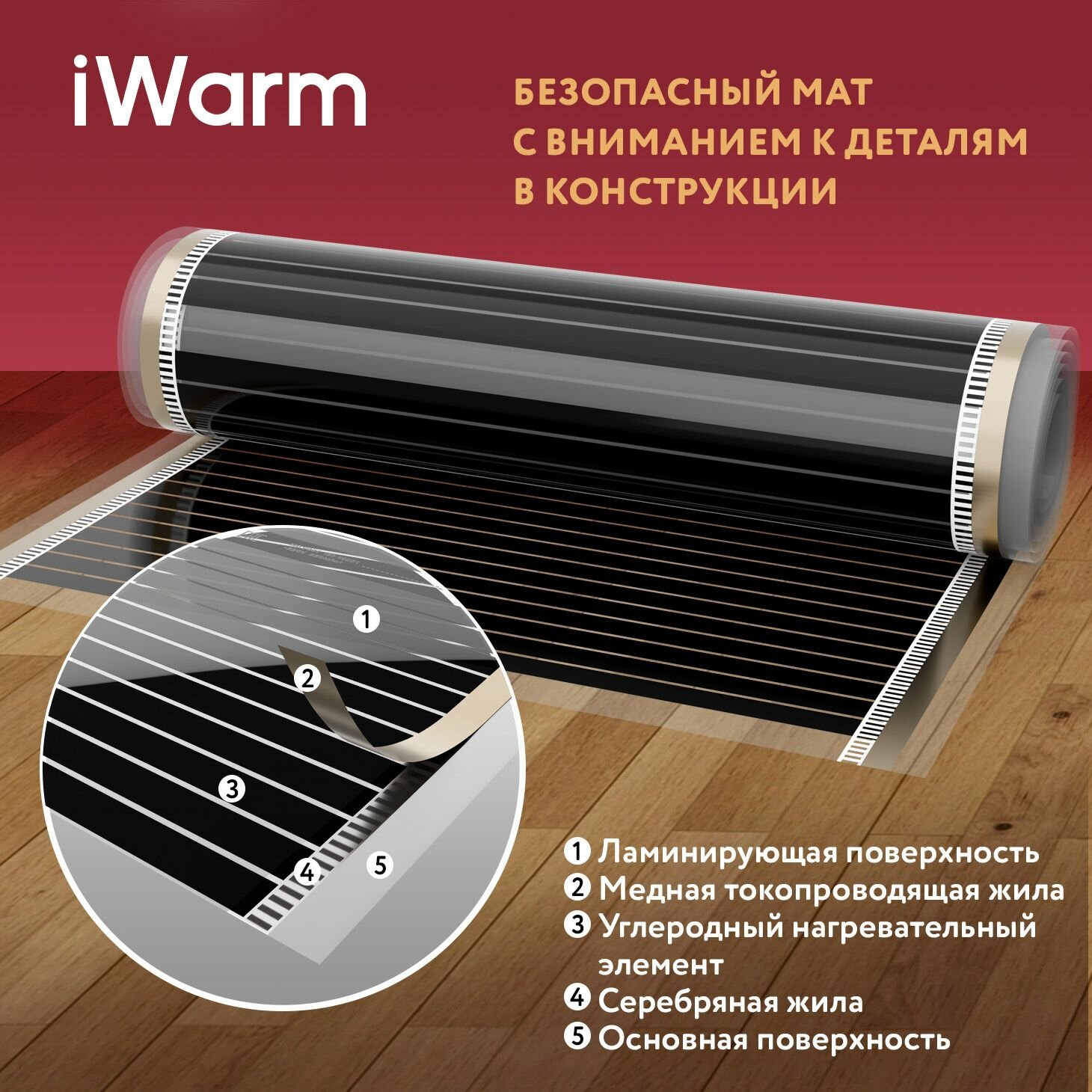Теплый пол инфракрасный, пленочный теплый пол iWarm 0,5 м2 (220 Вт/кв. м)
