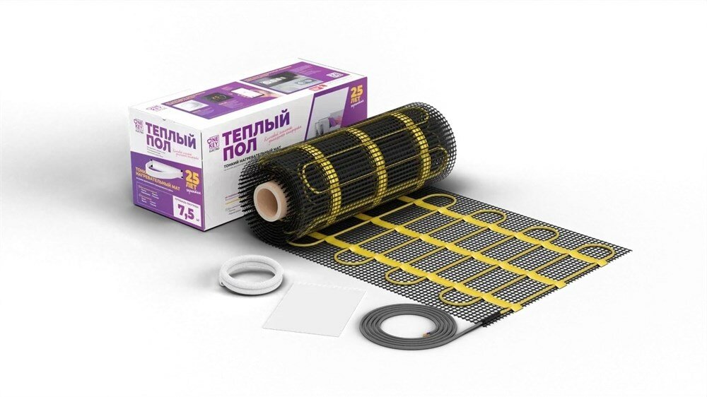 Теплый пол OneKeyElectro нагревательный мат под ламинат/плитку/линолеум: 7 кв. м (1050 Вт). 2284482