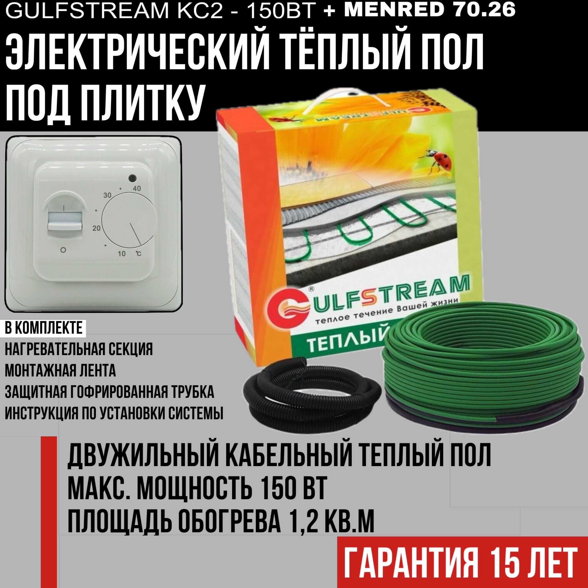 Электрический теплый пол в стяжку Гольфстрим / Gulfstream КГС2 - 150Вт (1,0 - 1,2 кв. м.) + Терморегулятор Menred 70.26 интересное: