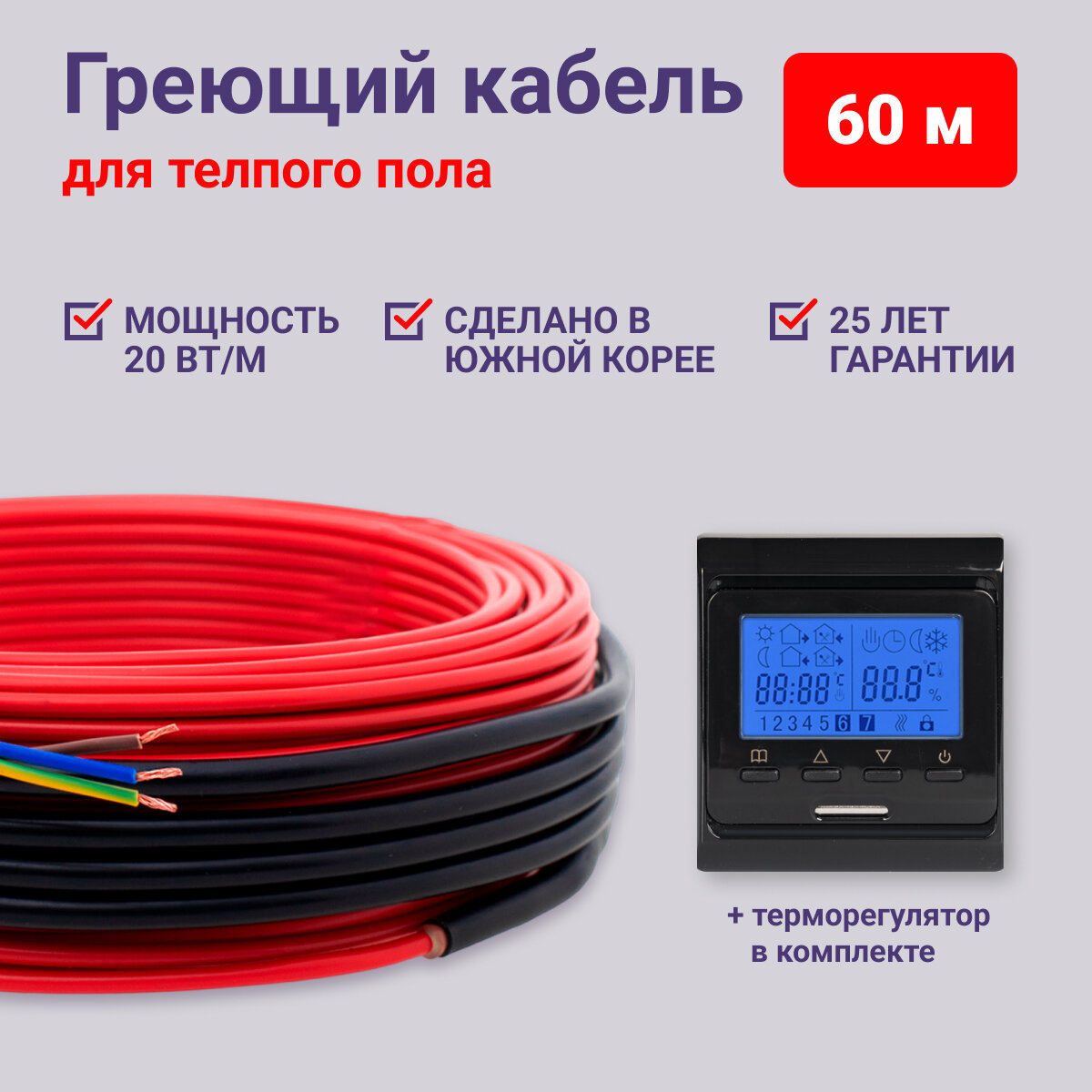 Теплый пол электрический под плитку Nunicho 150 м 20 Вт/м с Wi-Fi-термостатом M6 черным в комплекте
