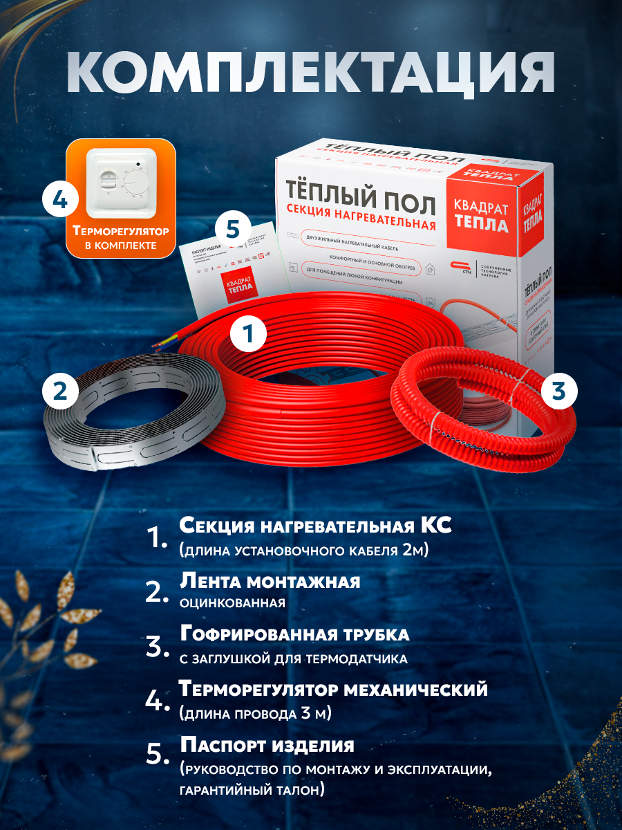 Теплый пол под плитку СТН КС 111 м-2000 Вт с механическим терморегулятором