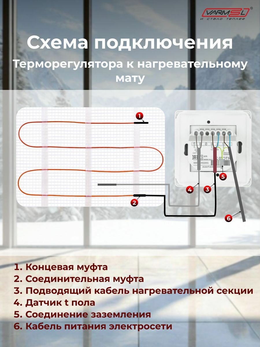 Тёплый пол электрический под плитку с терморегулятором 51.716 Varmel Eco Mat 9,0 м2 -1350w / Нагревательный мат
