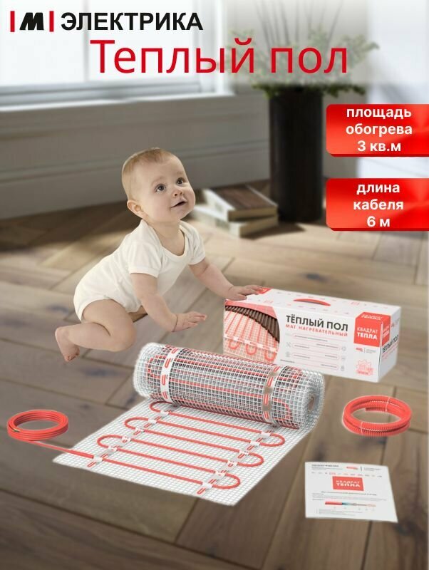 СохранитьТеплый пол электрический под плитку 3,0м2 СТН Т/пол "Квадрат тепла" мат 2ж 150Вт/кв. м. СТНКМ-450-3,0 с белым терморегулятором интересное: