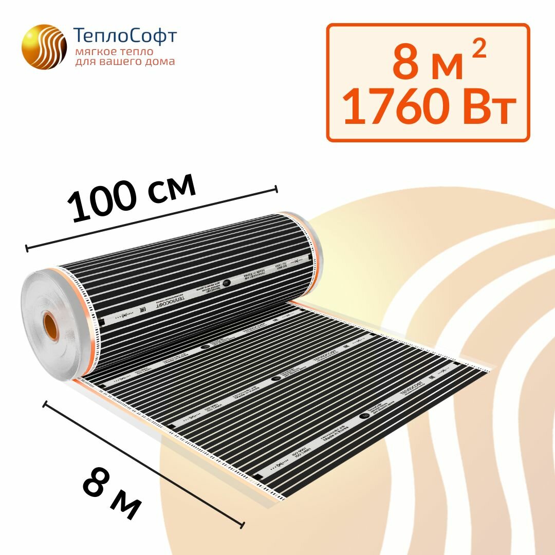 Инфракрасный пленочный теплый пол Теплософт 8 м², 1760 Вт с терморегулятором