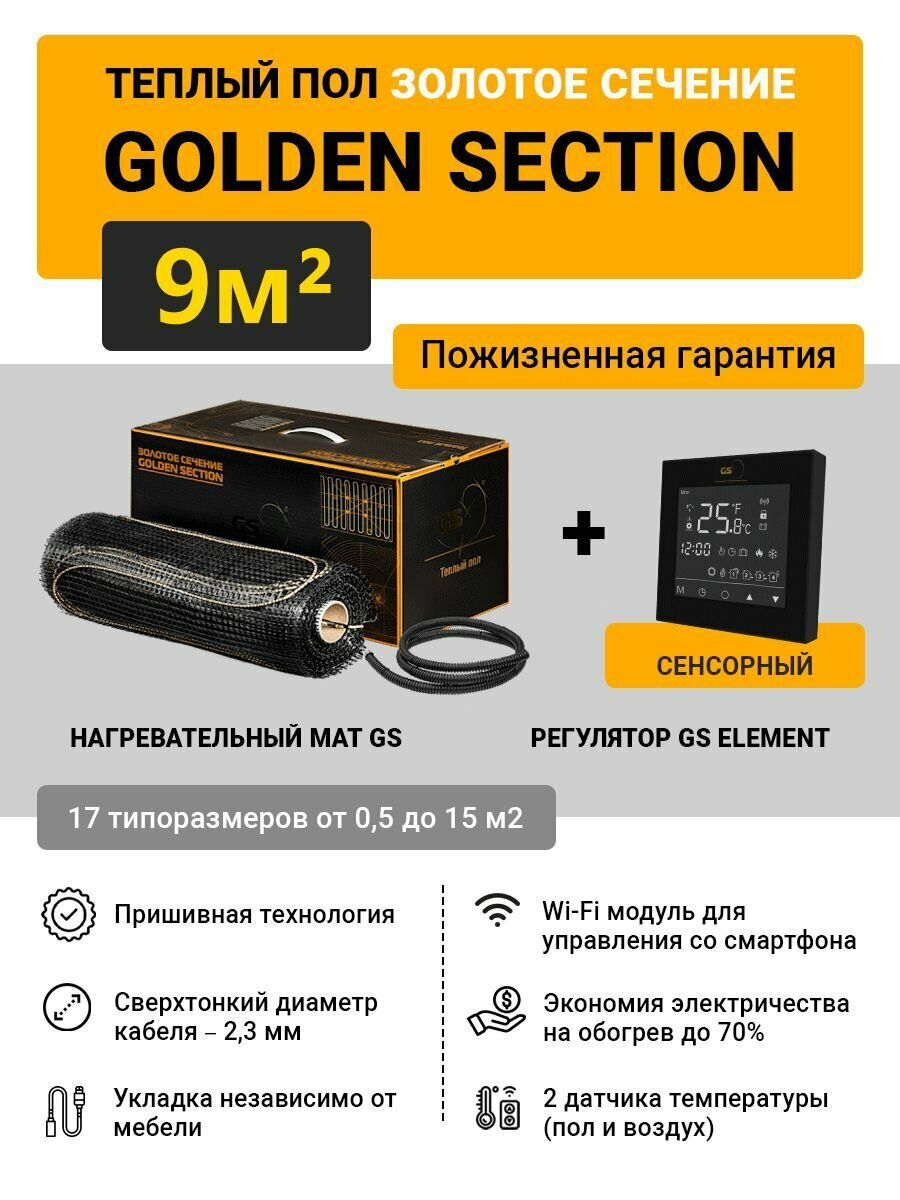 Купить Электрический тёплый пол под плитку Golden Section GS-1440-9,0 в комплекте с Терморегулятором GS Element