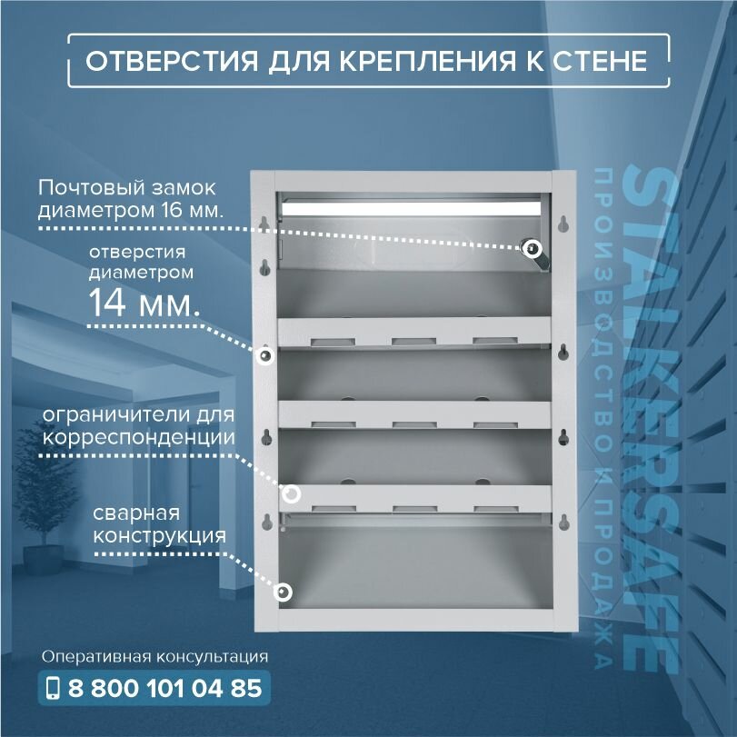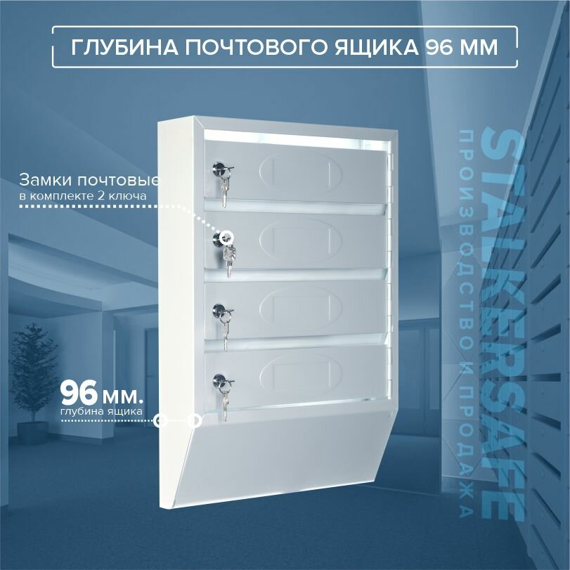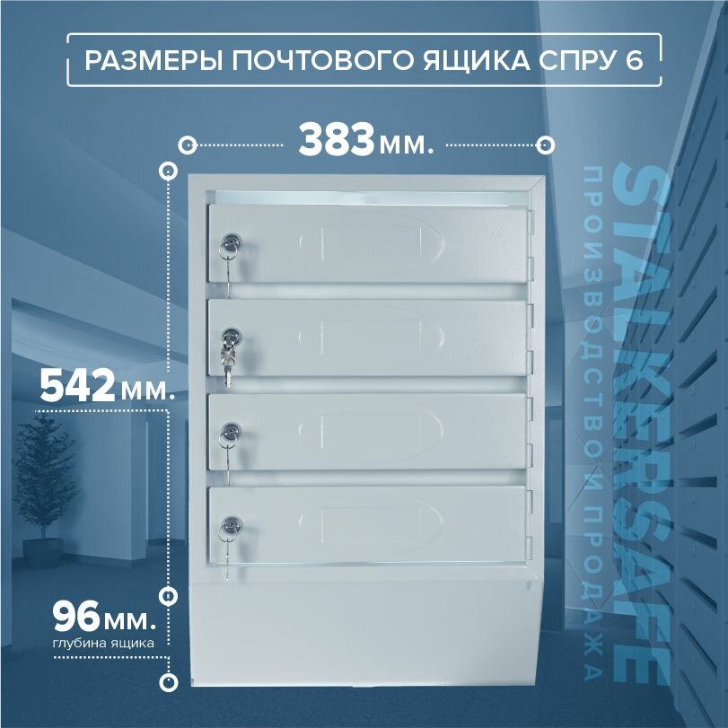 Почтовый ящик СПРУ-4 на 4 секции, размер 542x383x96 мм, светло-серый, замки в комплекте интересное: