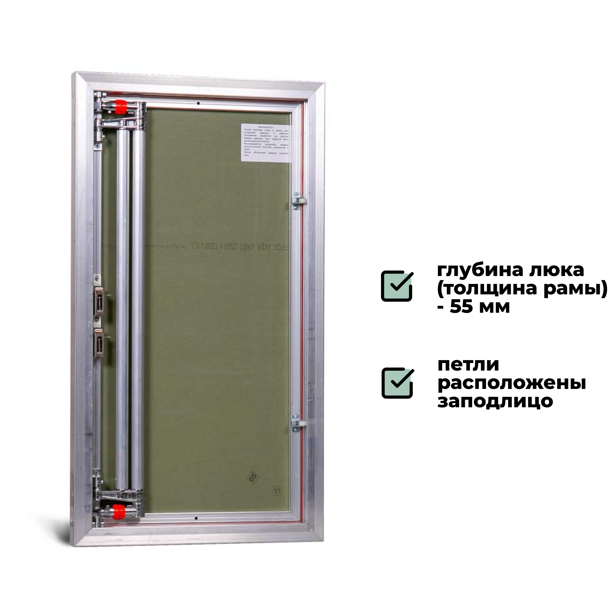 Скрытый ревизионный люк 50х90 (ШхВ) под плитку «Евроформат» Практика, нажимной, распашной интересное: