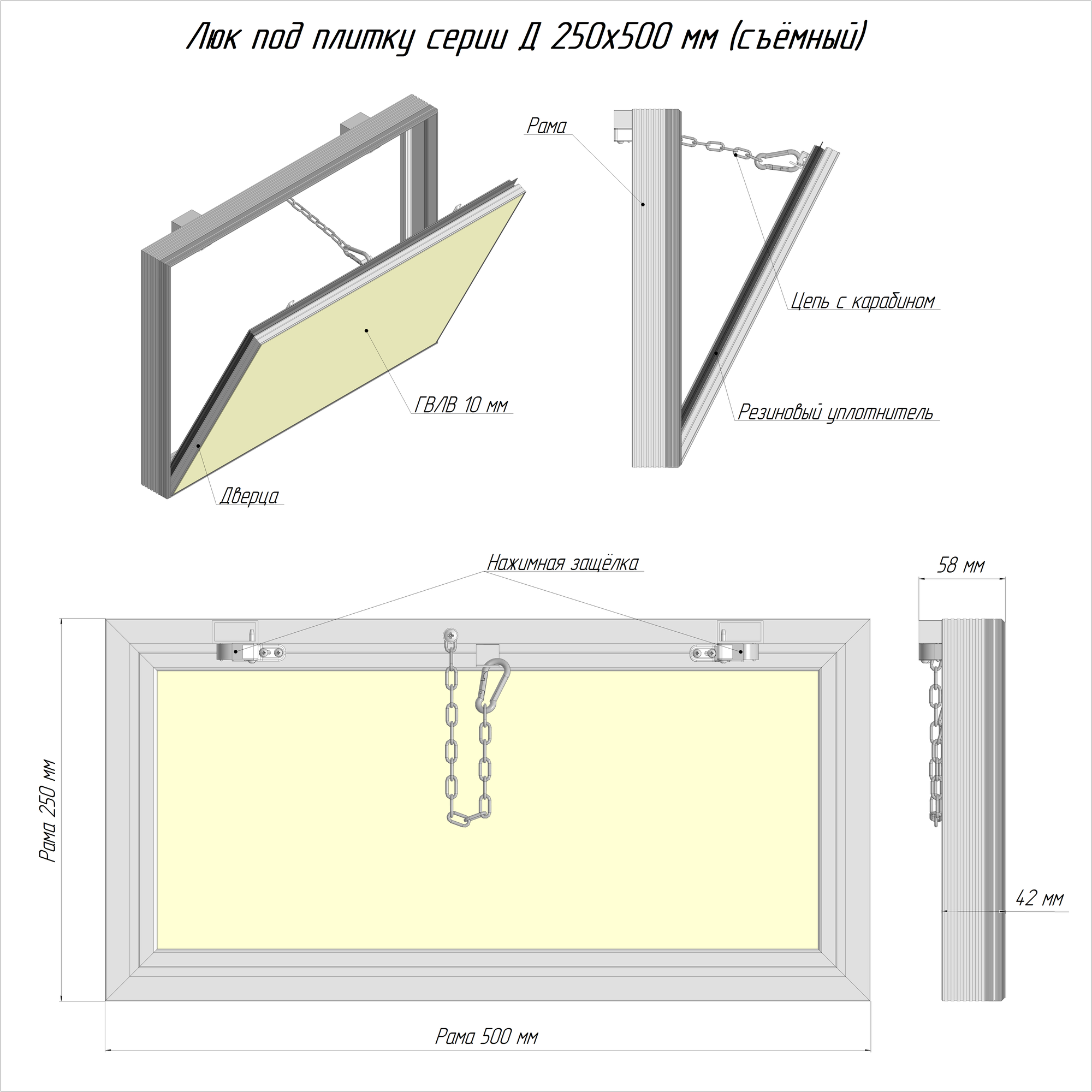 СохранитьЛюк под плитку (В/Ш) 25/50, съёмный, LYUKER, серия "Д", алюминиевый, с цепочкой и карабином интересное: