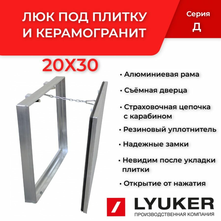 Люк под плитку (В/Ш) 30/20, съёмный, LYUKER, серия "Д", алюминиевый, с цепочкой и карабином
