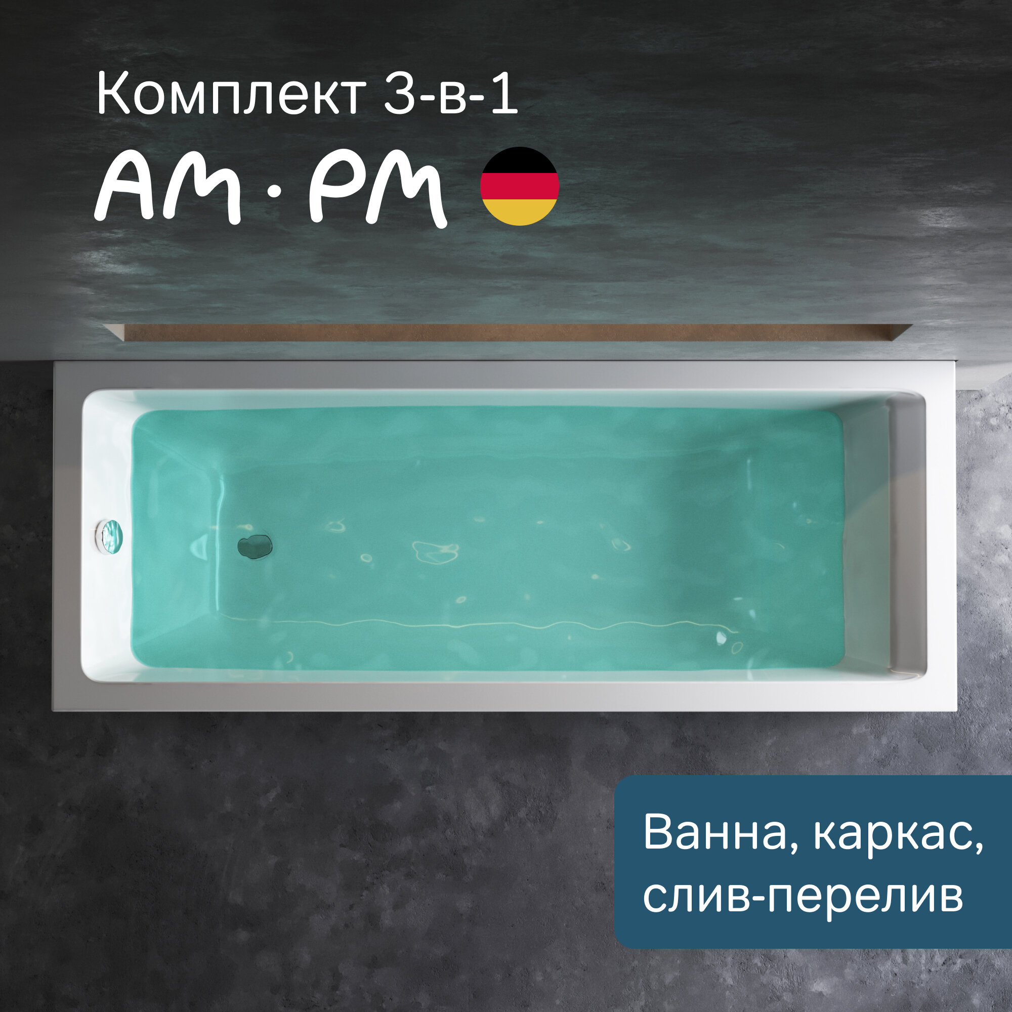 Ванна акриловая 180x70 AM.PM Gem 3в1: ванна, каркас и слив-перелив хром; усиленный корпус, надежное акриловое покрытие интересное: