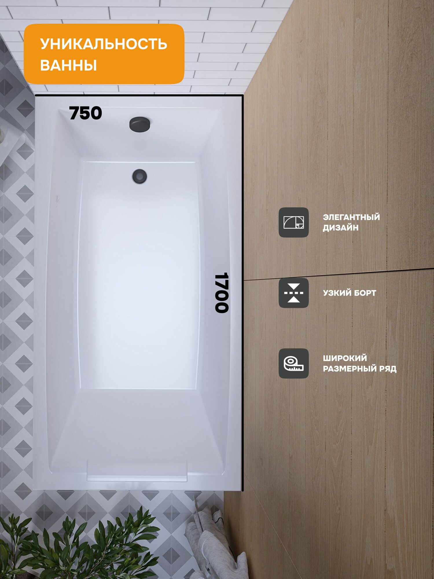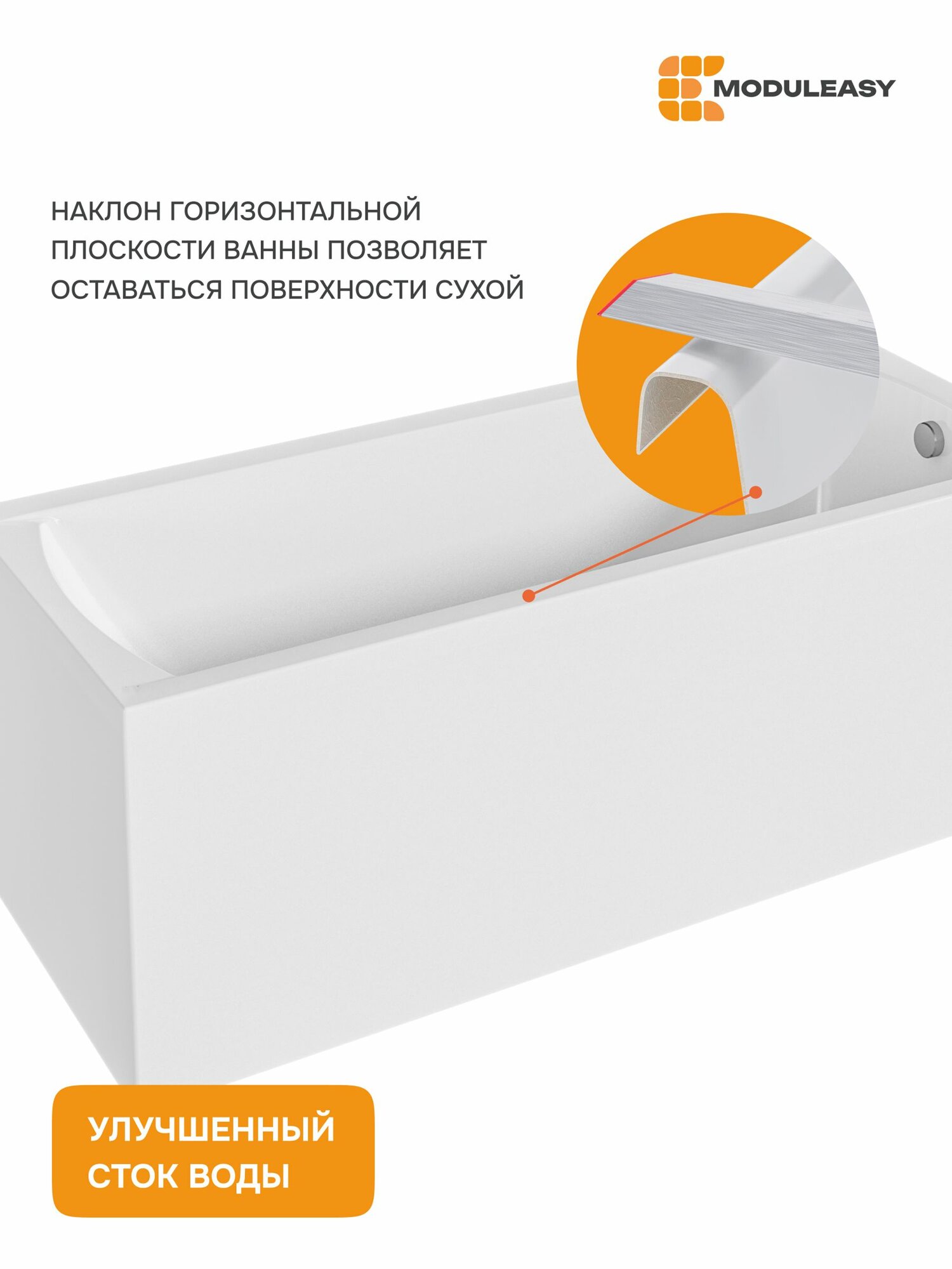 Купить Ванна акриловая 170х75 см ABBY Прямоугольная белая, 100% сантехнический акрил, MODULEASY 01аб1775