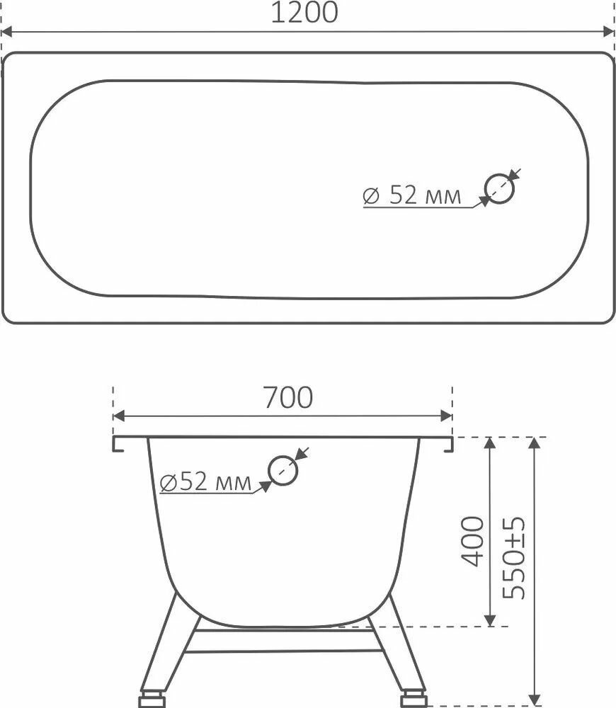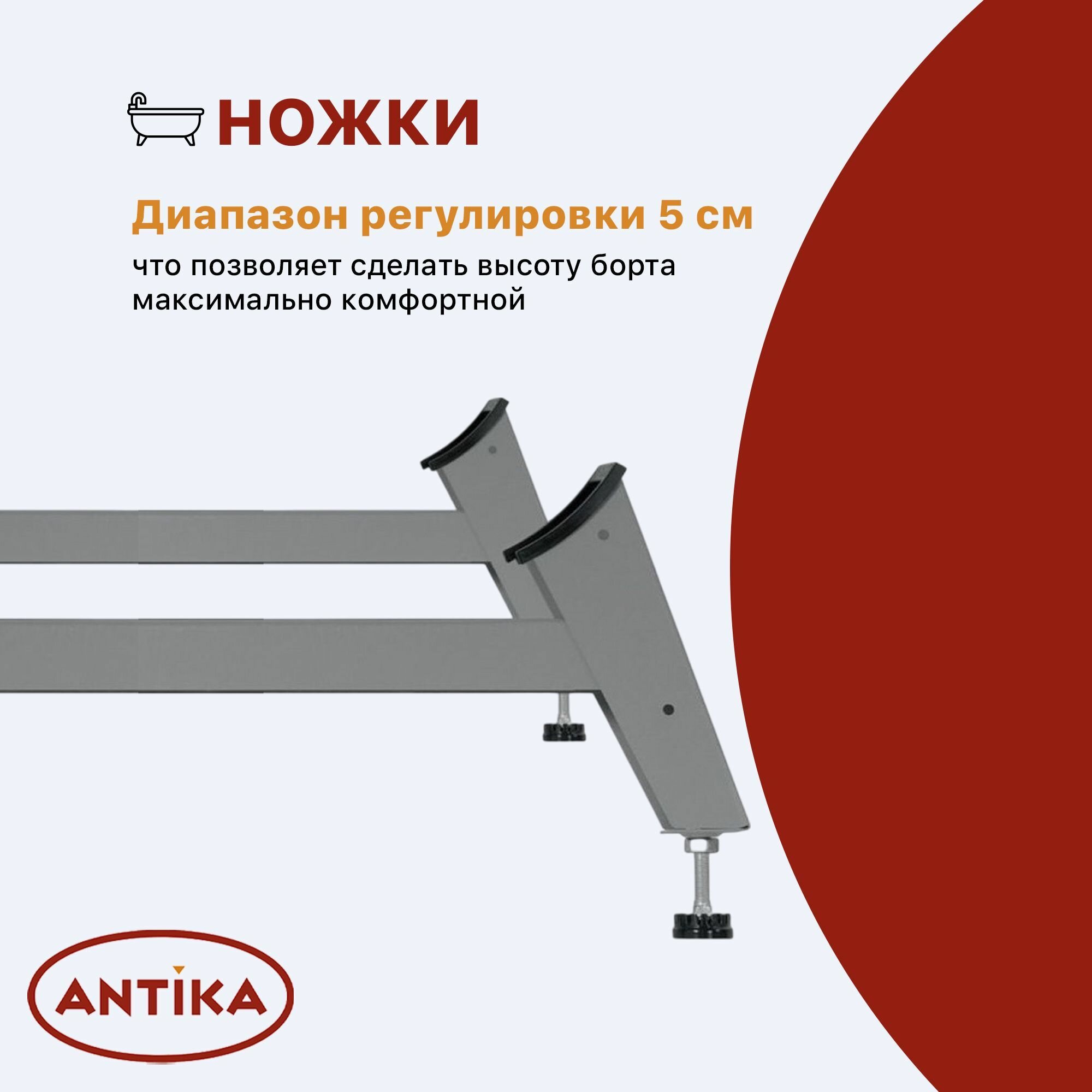 Стальная ванна 105х65х35,5 Antika без ранта, ножки в комплекте, толщина 1,8мм, ВИЗ