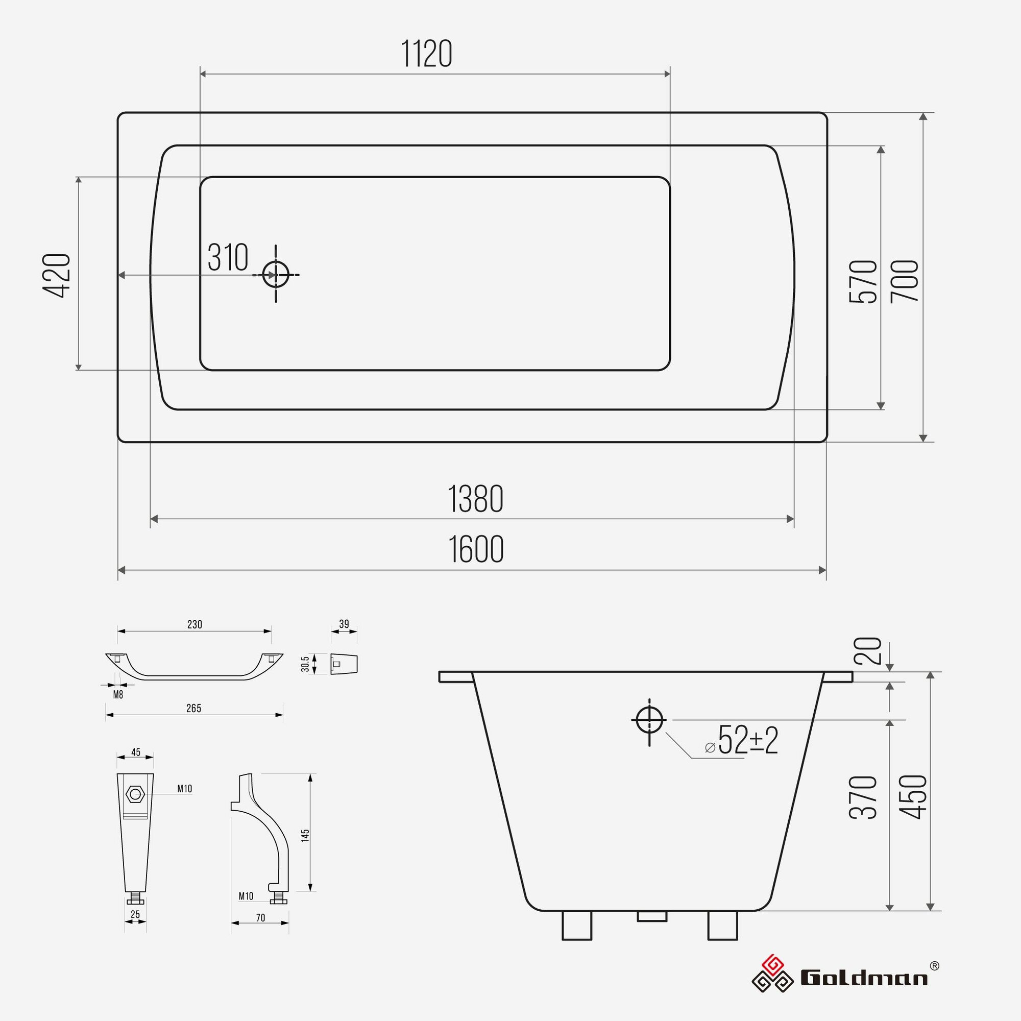 Чугунная ванна Goldman Elite 160x70x45 с квадратными хромированными ручками интересное: