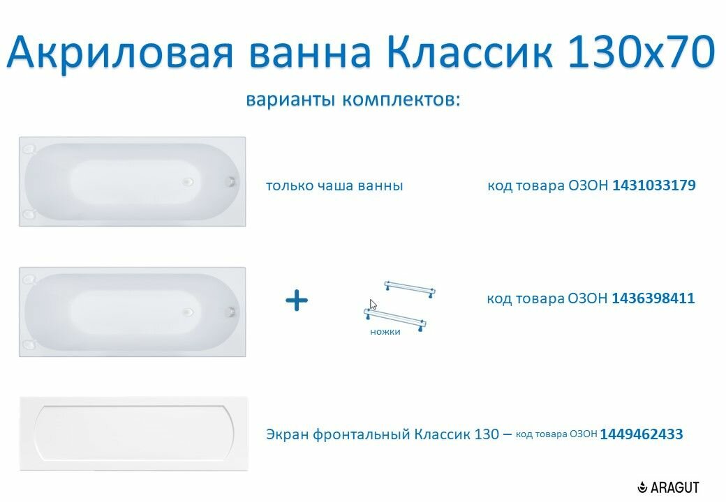 Ниже Вы можете прочитать отзывы на Акриловая ванна ARAGUT Классик 130х70 прямоугольная, в комплекте с ножками, белая, ознакомится с подробными характеристиками, посмотреть интересные обзоры и фотографии на Акриловая ванна ARAGUT Классик 130х70 прямоугольная, в комплекте с ножками, белая.