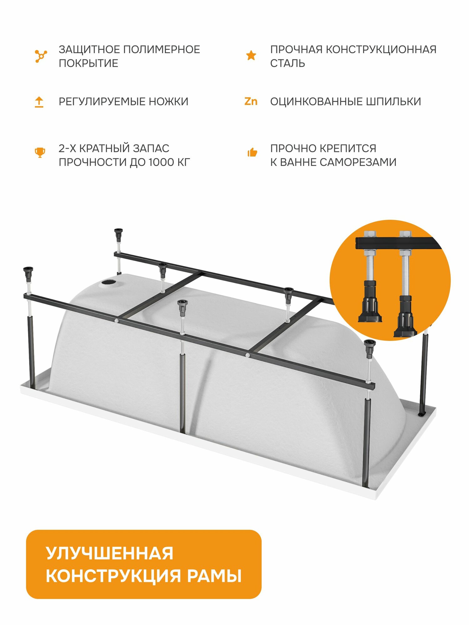 Ванна акриловая 170х75 см INFORM MODULEASY комплект 3в1: ванна правый угол, стальные ножки, слив-перелив 01инф1775пкс2+