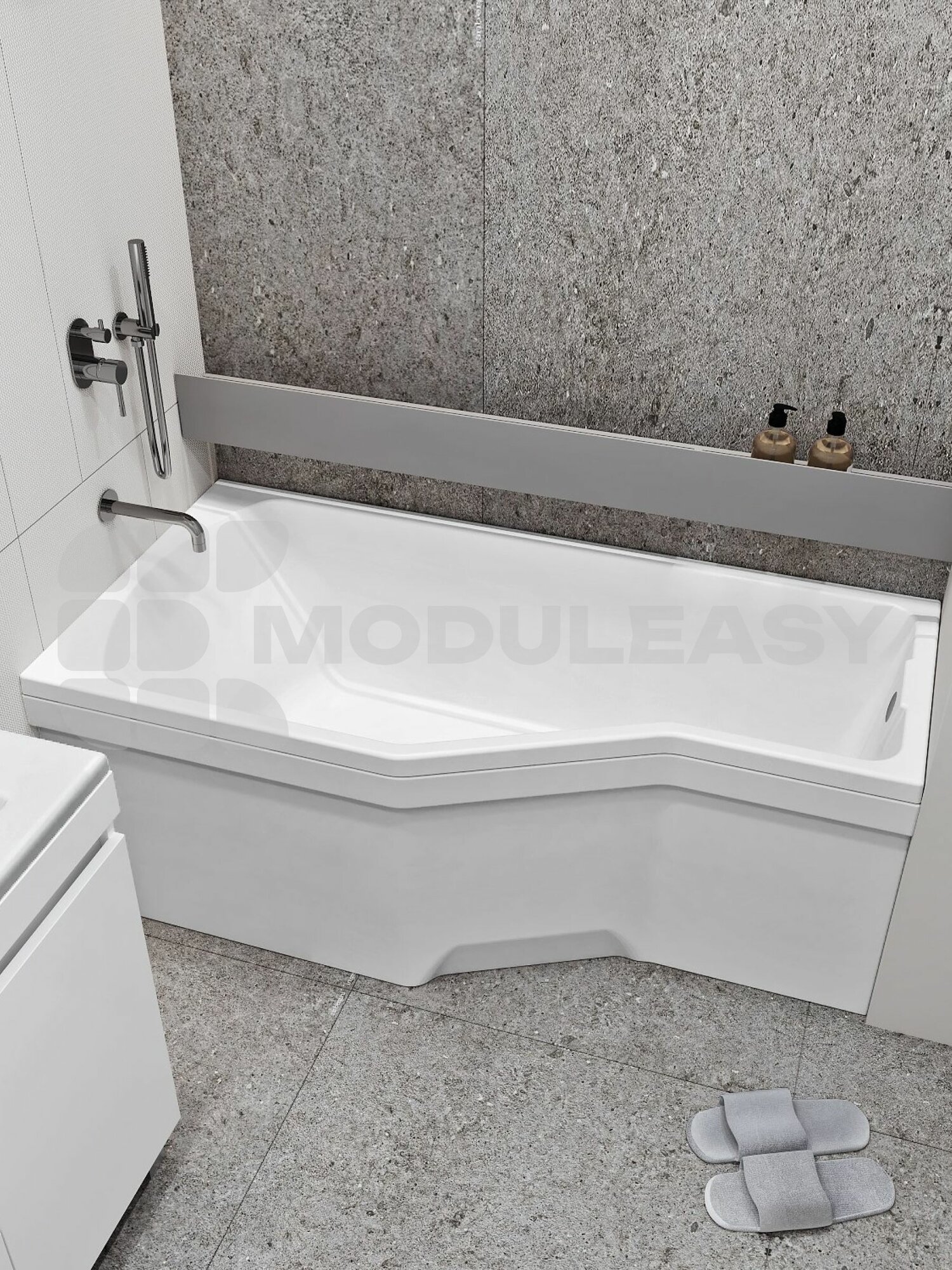 Ванна акриловая 150х75 см INFORM MODULEASY комплект 3в1: ванна левый угол, стальные ножки, слив-перелив 01инф1575лкс2+