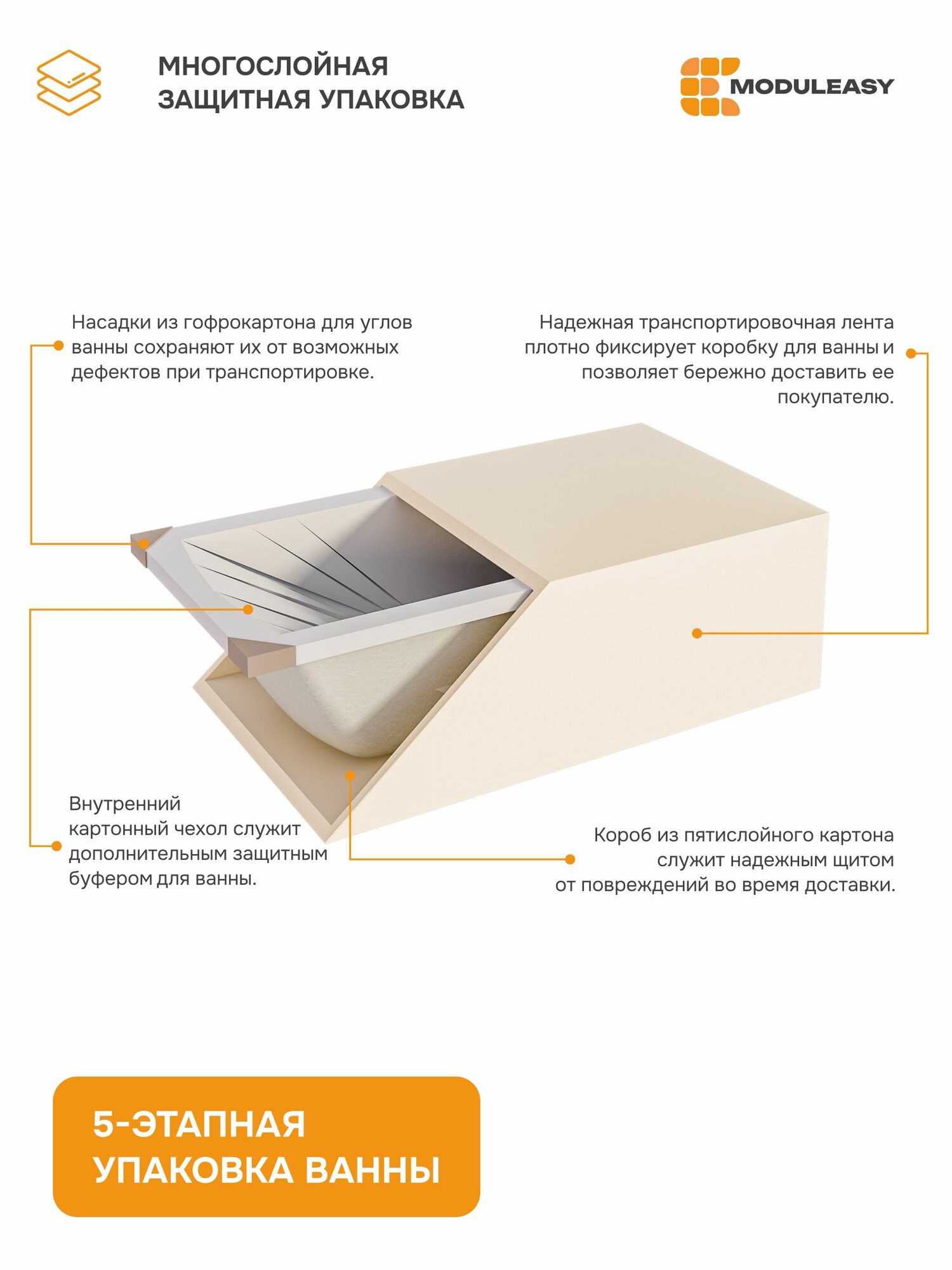 Ванна акриловая 150х75 см INFORM MODULEASY комплект 3в1: ванна правый угол, стальные ножки, слив-перелив 01инф1575пкс2+