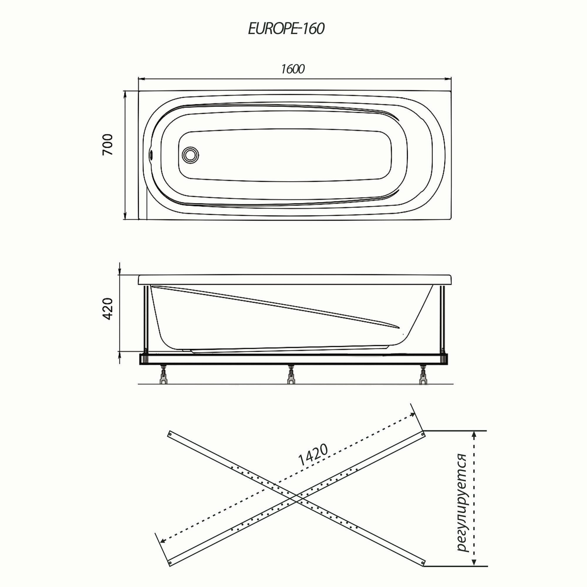 Купить Ванна акриловая Европа 160х70 в комплекте с каркасом