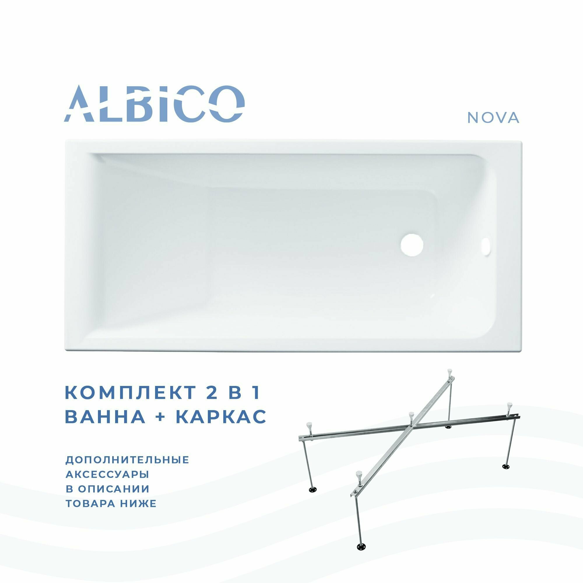 Ванна акриловая Albico Nova 160х70 в комплекте с каркасом
