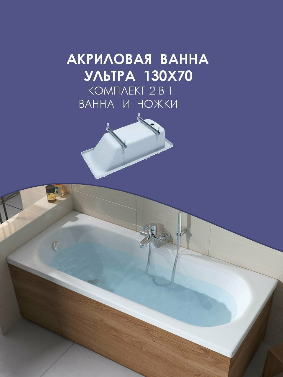 Купить Ванна акриловая прямоугольная Triton Ультра 130 х70 в комплекте с ножками, белая