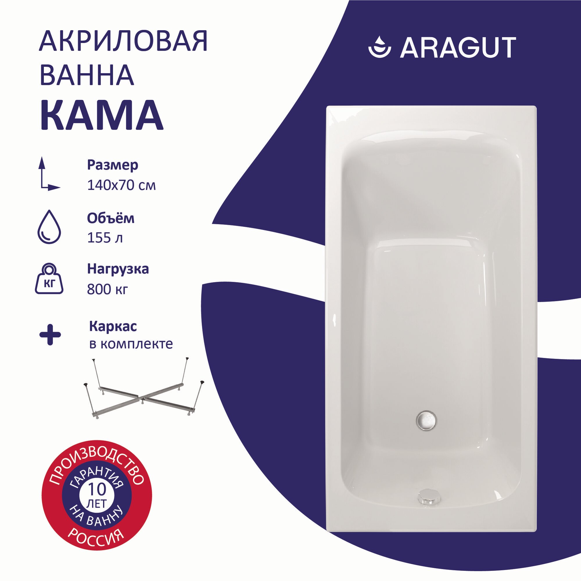 Акриловая ванна ARAGUT Кама 140х70 прямоугольная, в комплекте с каркасом, белая интересное: