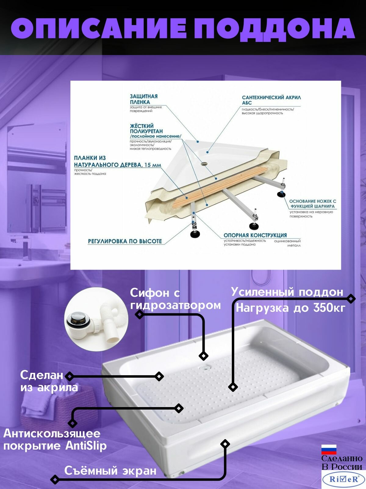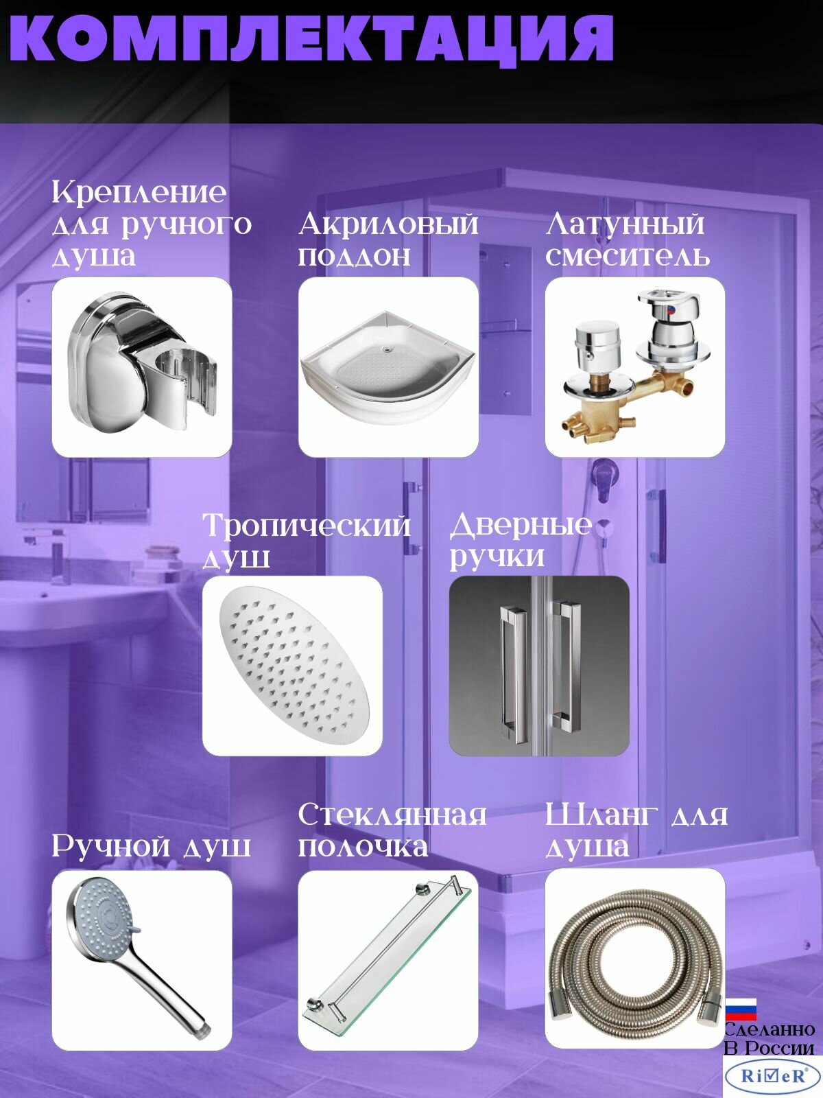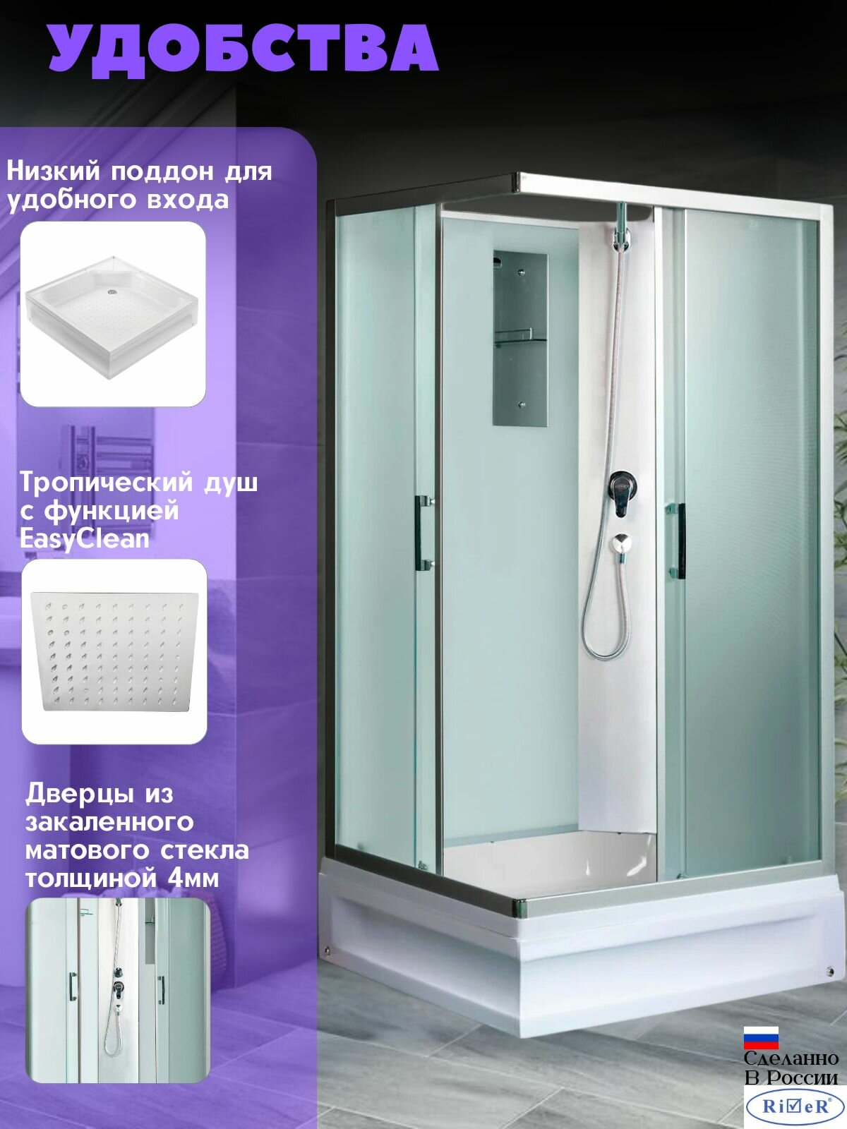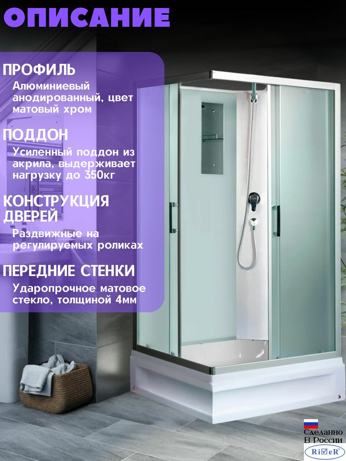 Душевая кабина River QUADRO Б/К 100/80/24 MT (100x80) средний поддон, стекло матовое, универсальная интересное:
