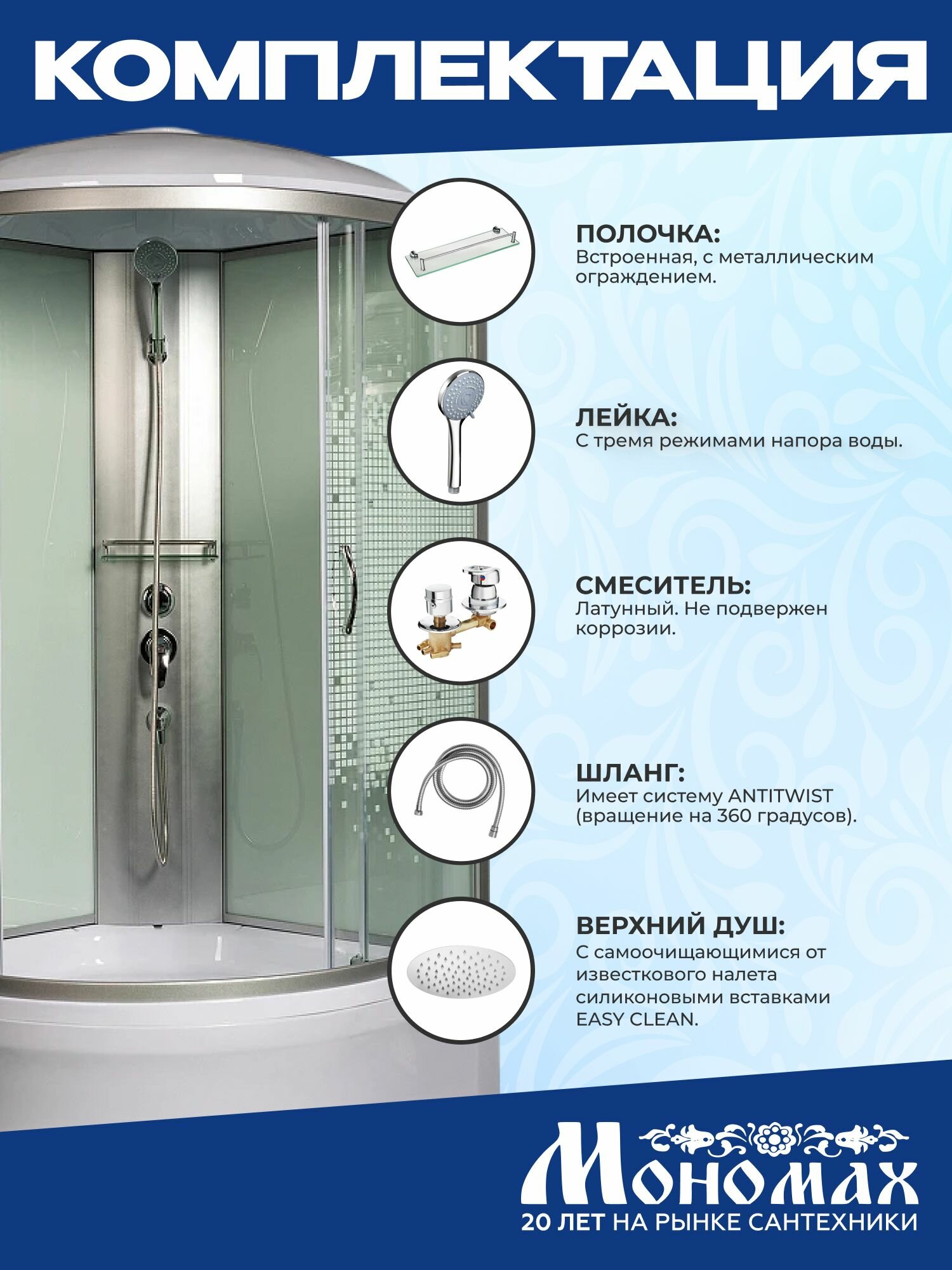 Ниже Вы можете прочитать отзывы на Душевая кабина мономах (80x80) высокий поддон, стекло мозаика, универсальная, ознакомится с подробными характеристиками, посмотреть интересные обзоры и фотографии на Душевая кабина мономах (80x80) высокий поддон, стекло мозаика, универсальная.