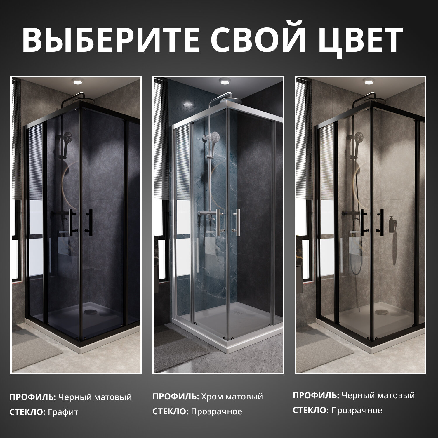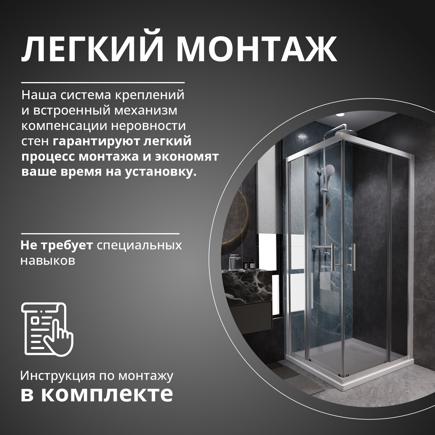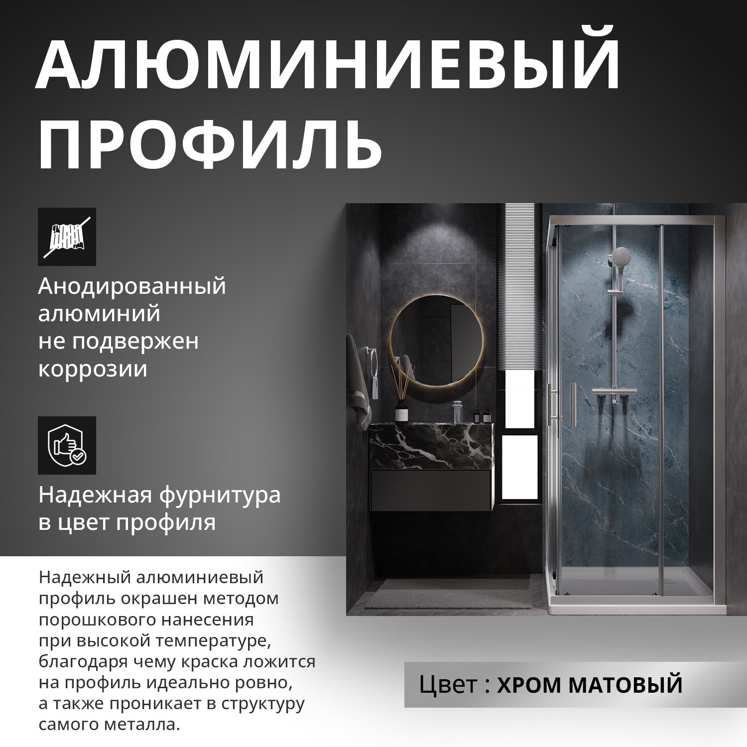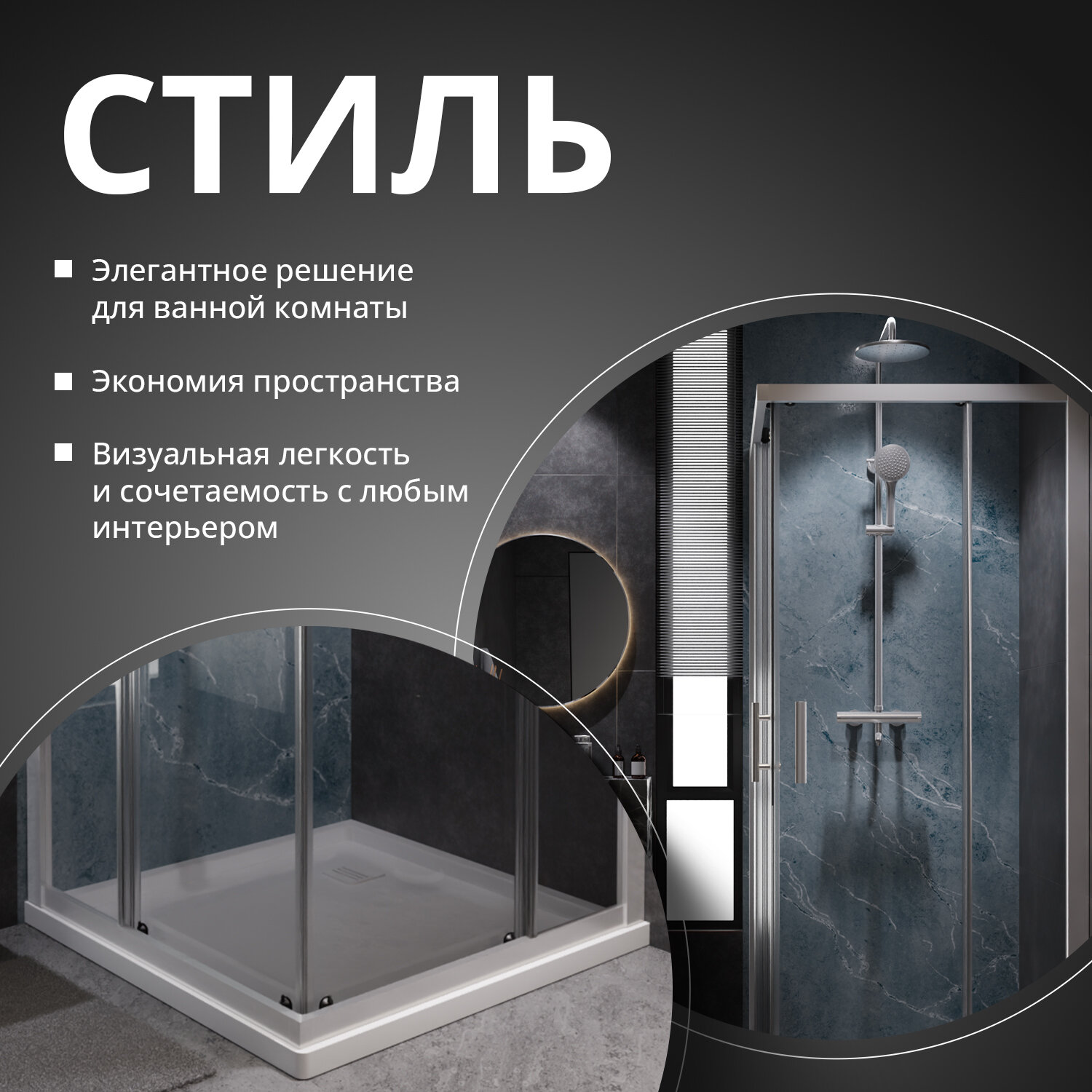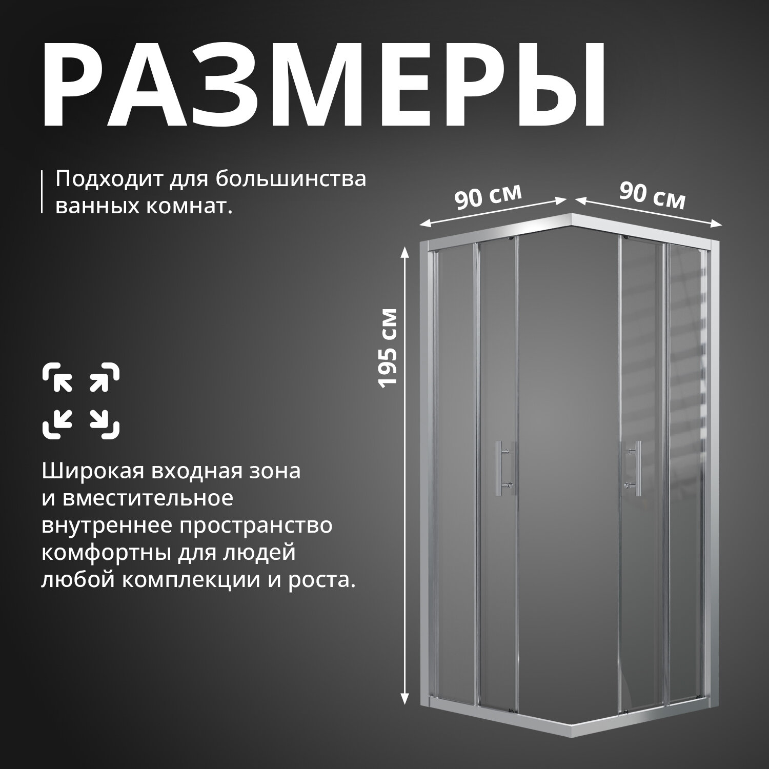 Душевой уголок раздвижной 900х900х1950 мм, цвет профиля Хром матовый, цвет стекла Бесцветное интересное: