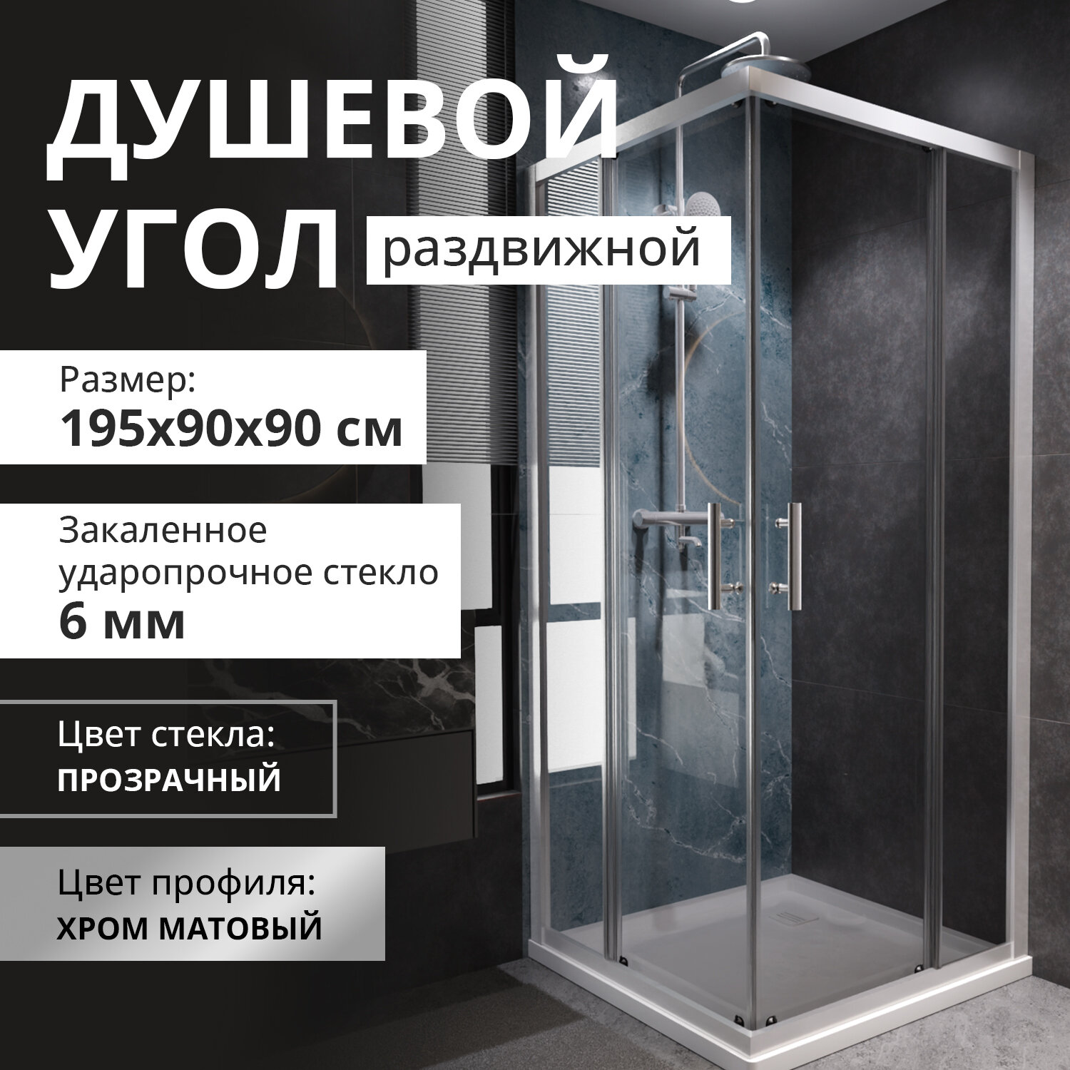 Купить Душевой уголок раздвижной 900х900х1950 мм, цвет профиля Хром матовый, цвет стекла Бесцветное