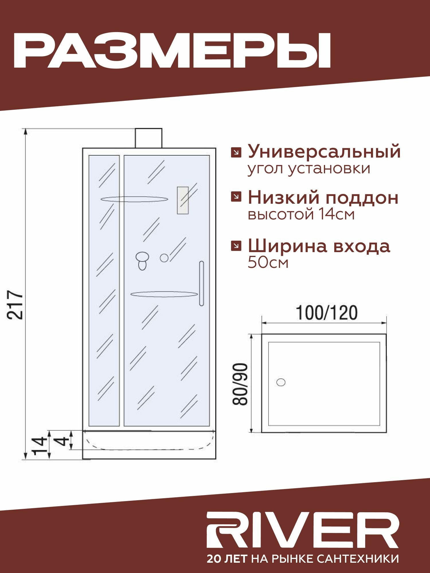 Душевая кабина River TANA (120x90) низкий поддон, стекло прозрачное, универсальная интересное: