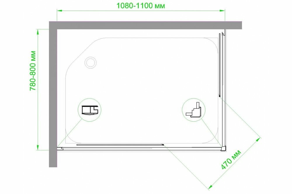 Купить Душевой уголок 110х80х200 Royal Bath стекло прозрачное прямоугольник 6 мм профиль черный матовый