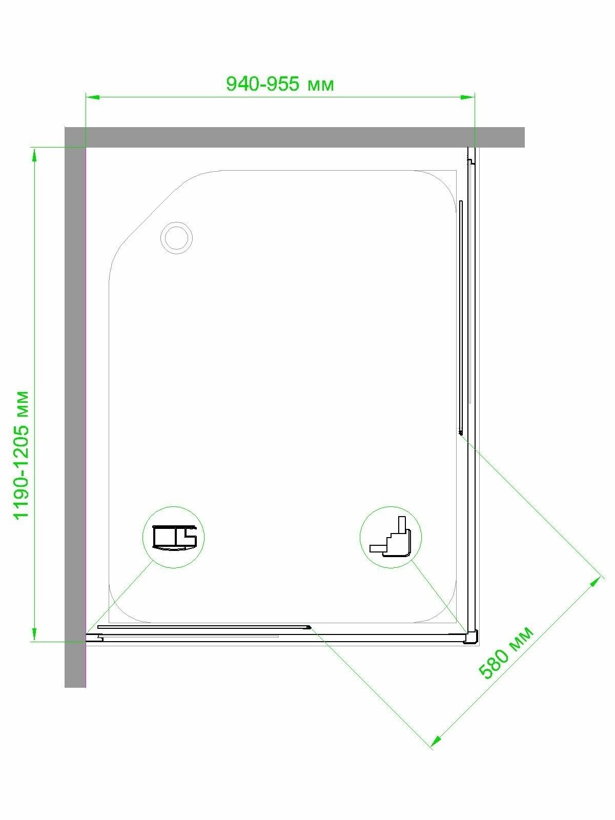 Душевой уголок 95х115х200 стекло матовое прямоугольник 6 мм профиль черный матовый