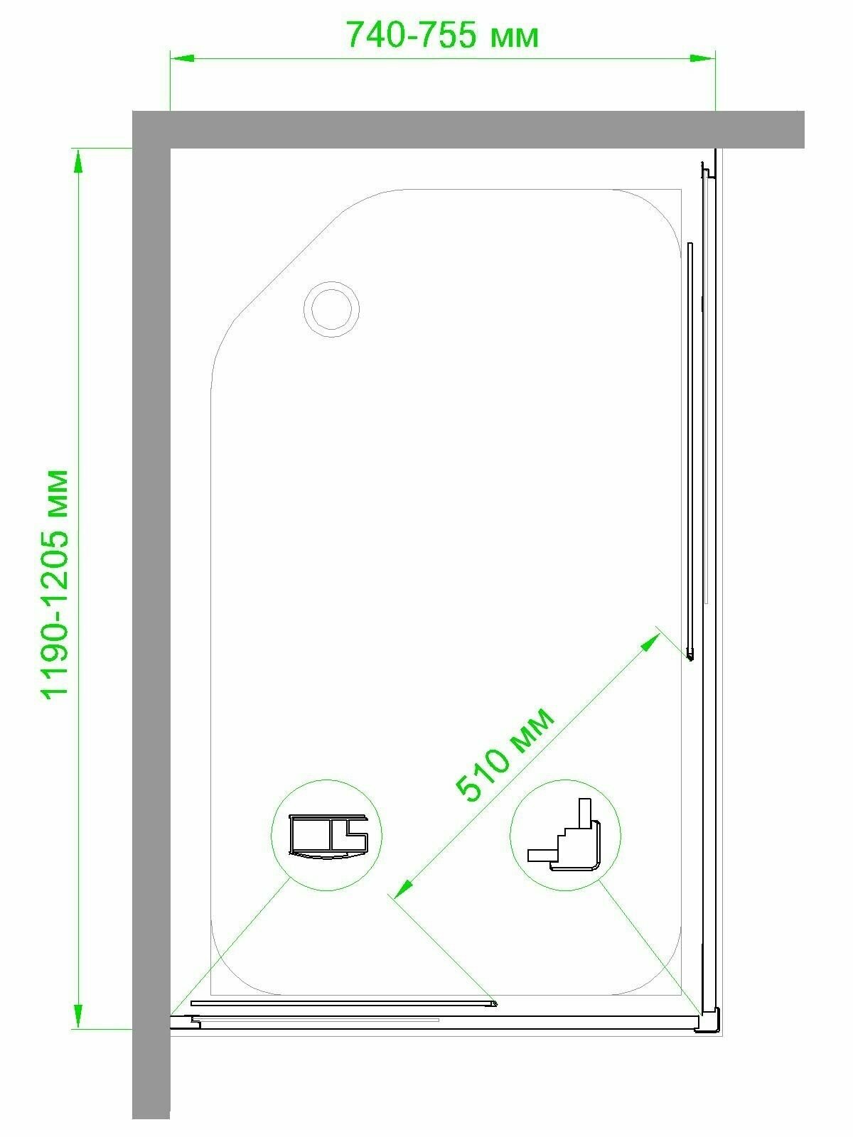 Душевой уголок 75х90х200 Royal Bath прямоуголник стекло прозрачное 6 мм профиль черный матовый