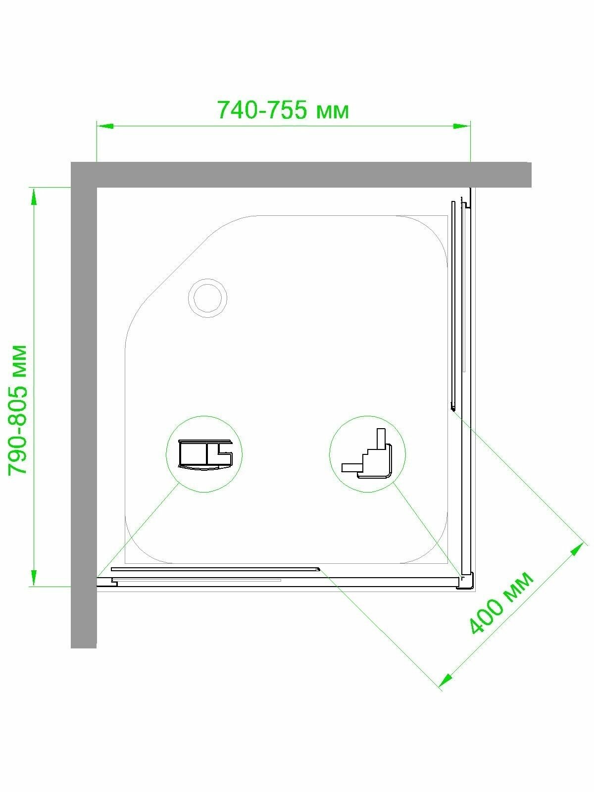 Душевой уголок 80х95х200 стекло прозрачное прямоугольник 6 мм профиль черный матовый