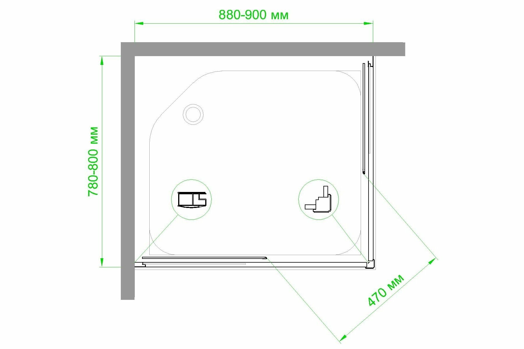 Душевой уголок 90х80х200 стекло матовое прямоугольник 6 мм профиль черный матовый