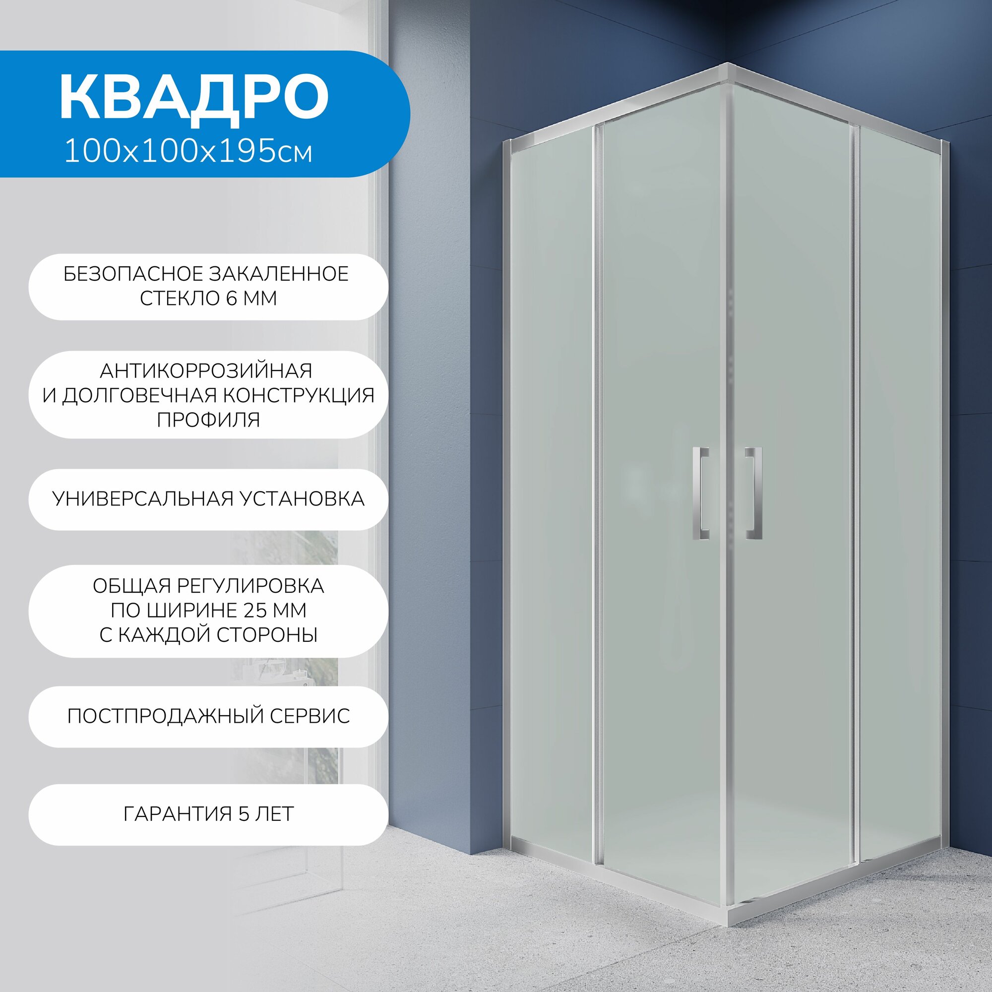 Душевой уголок 100х100 см. Квадро стекло матовое, профиль глянцевый хром