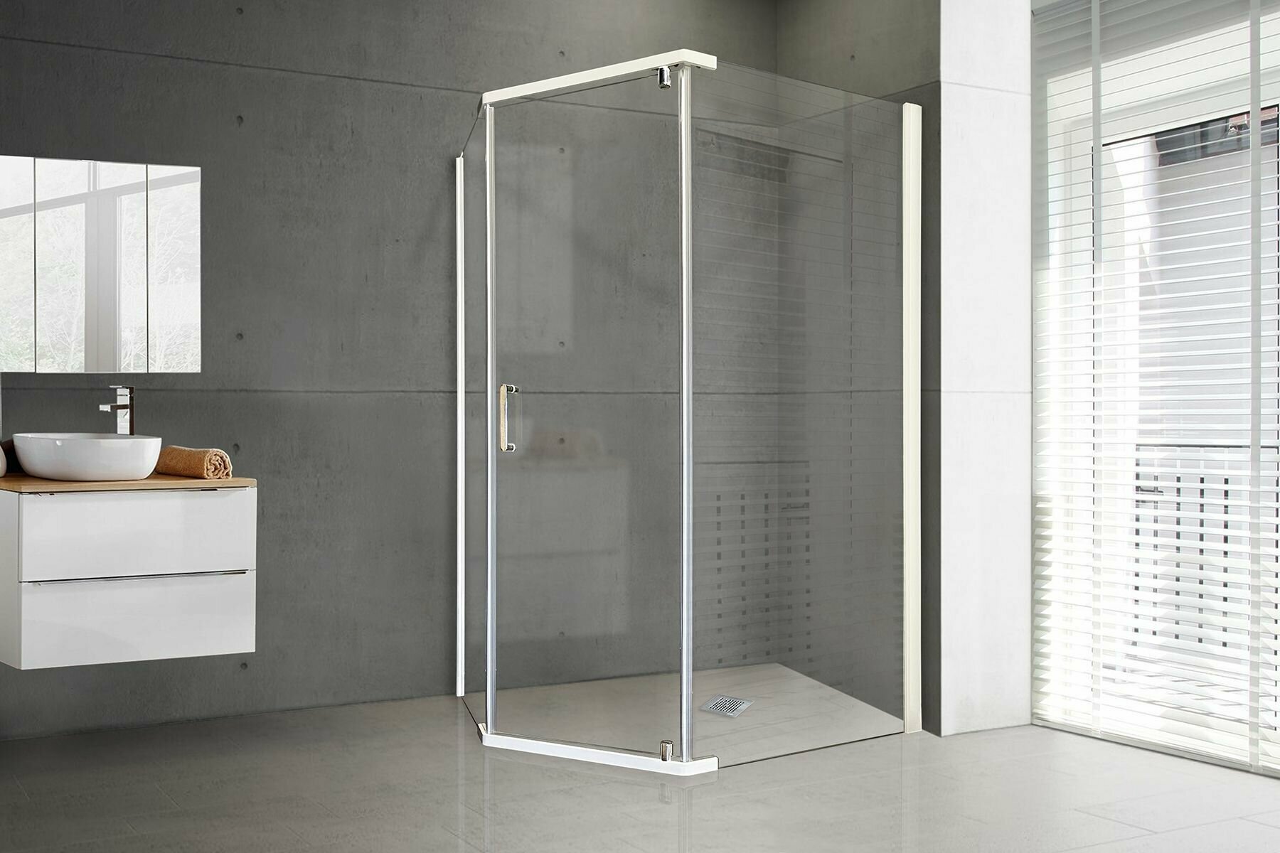Душевой уголок Royal Bath стекло прозрачное профиль белый 6мм трапеция 85х90х200