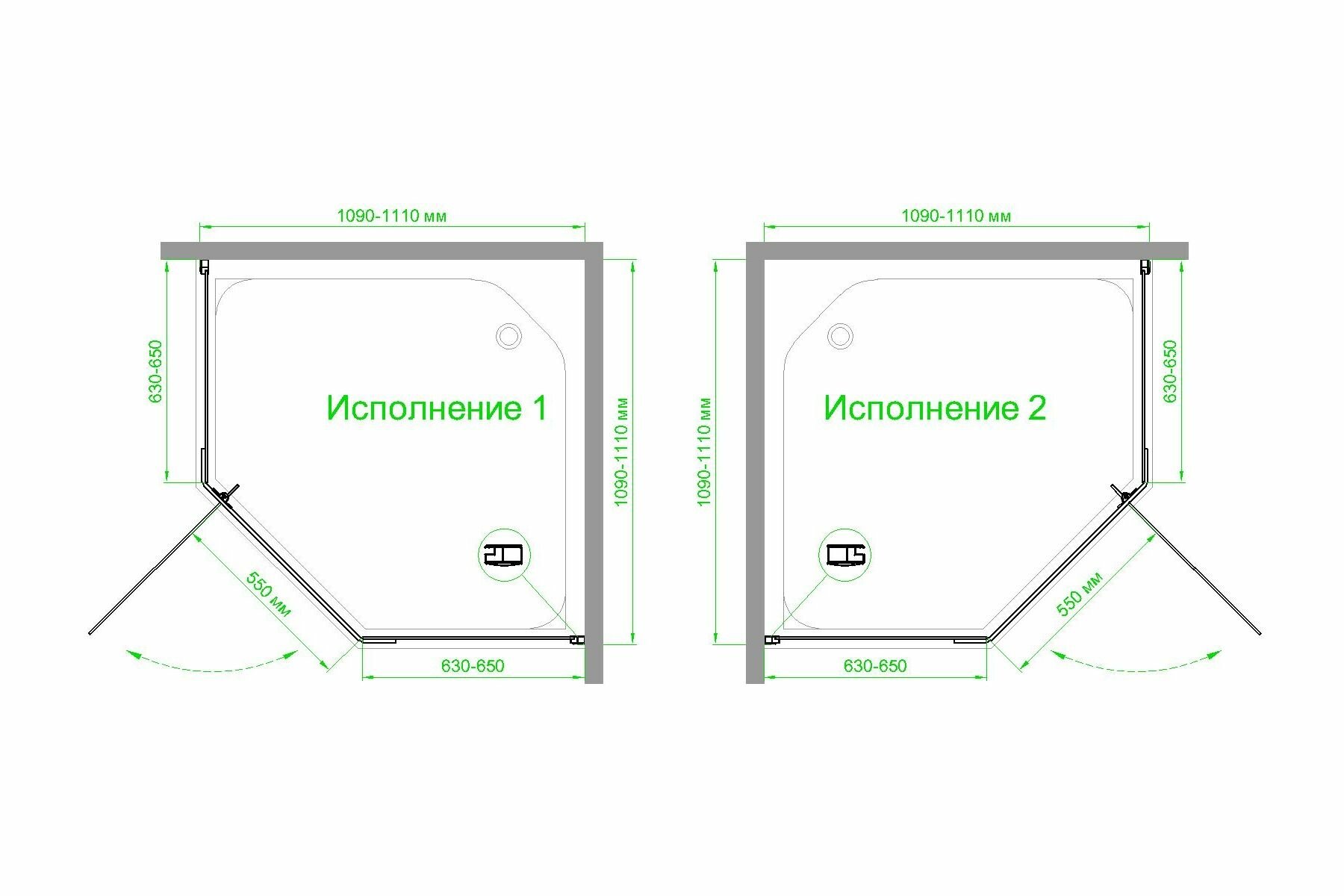 Душевой уголок RB 110х90х200 стекло прозрачное 6мм профиль сатин