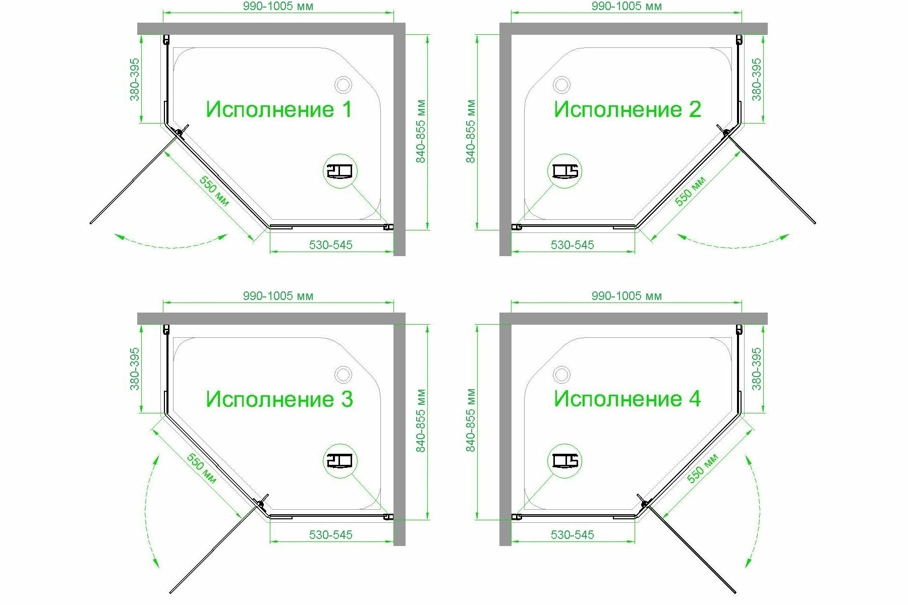 Душевой уголок Royal Bath стекло матовое профиль черный 6мм трапеция 80х110х200